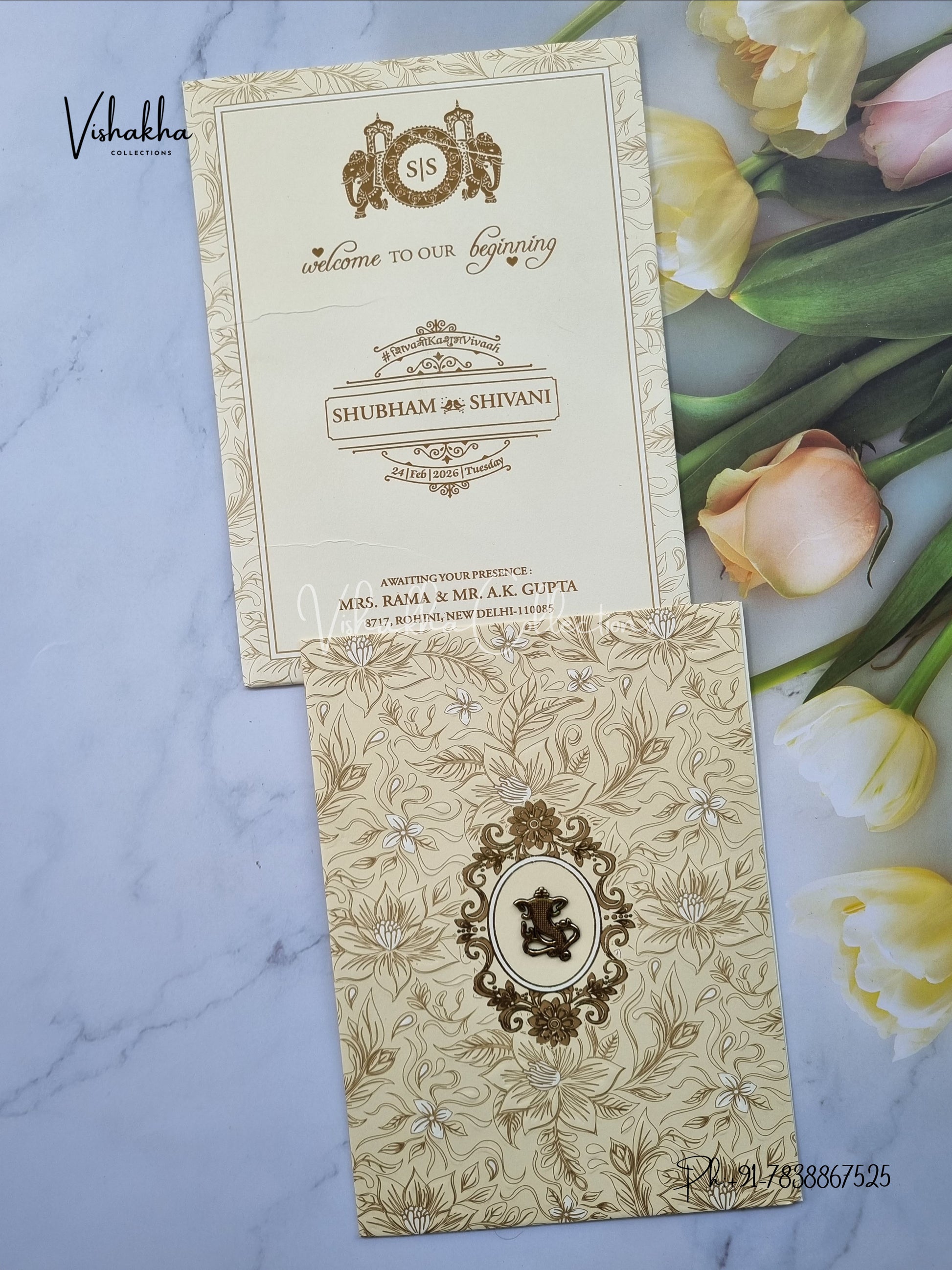 Vishakha Collections presents you beautiful luxury wedding invitation cards with all latest designs and the latest variety. Its just not a wedding invitation card but a beautiful feeling of love and relationship it carries for you. Beautifully printed and packed with a bundle of love. if you like it, dont think again, just go for it.If you are worrying about the quality of the product, send your doubts to us. We are here to help you. If you want in wholesale or bulk, dont forget to contact us.