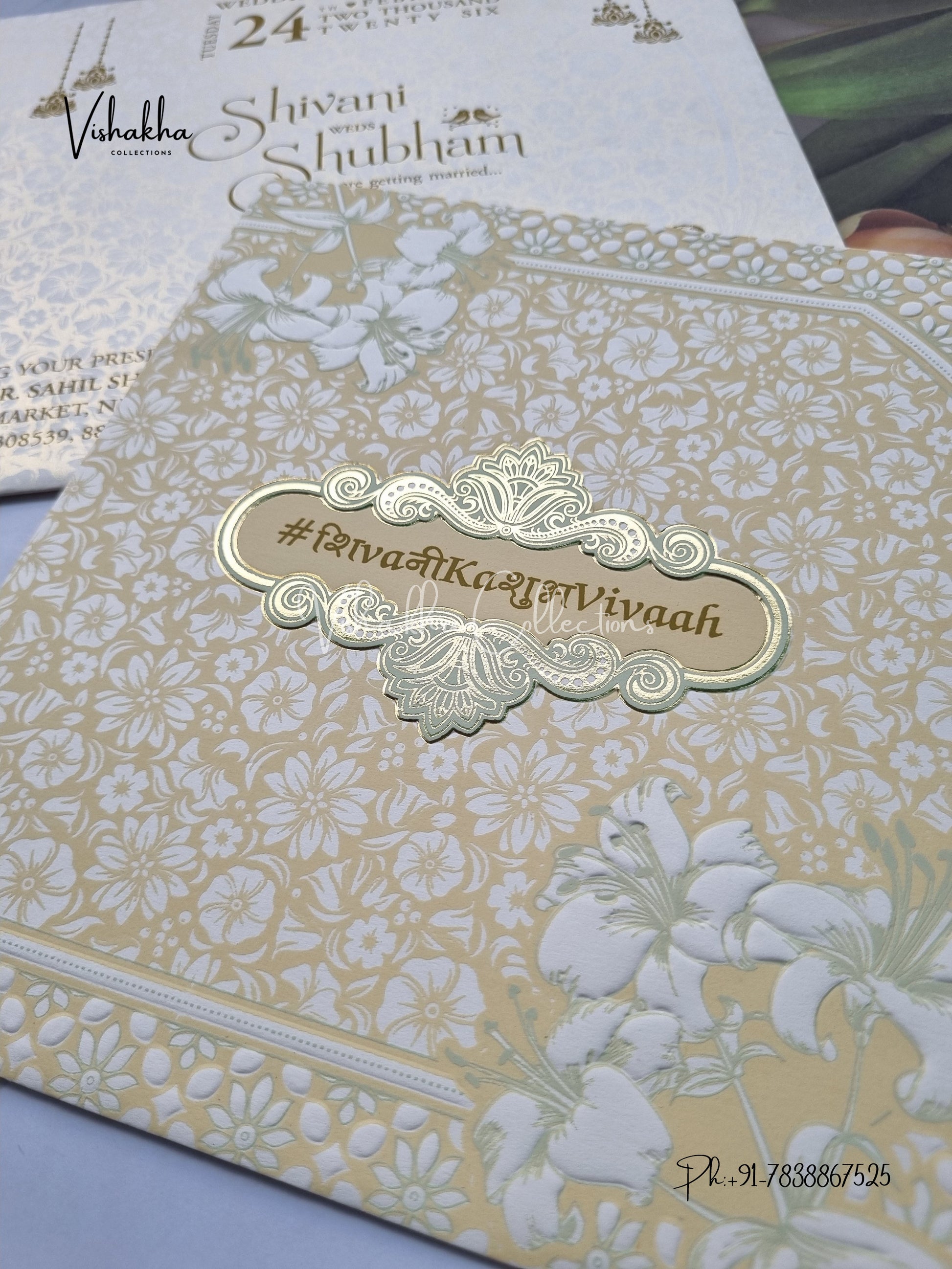 Vishakha Collections presents you beautiful luxury wedding invitation cards with all latest designs and the latest variety. Its just not a wedding invitation card but a beautiful feeling of love and relationship it carries for you. Beautifully printed and packed with a bundle of love. if you like it, dont think again, just go for it.If you are worrying about the quality of the product, send your doubts to us. We are here to help you. If you want in wholesale or bulk, dont forget to contact us.