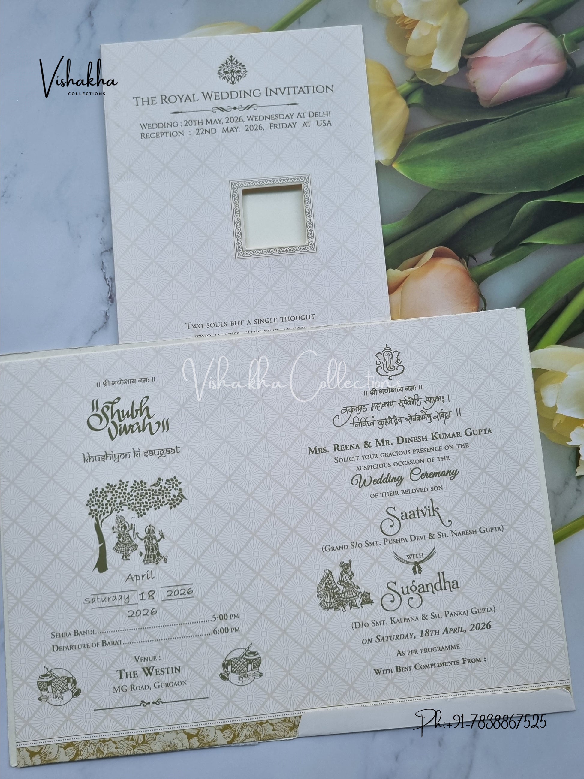 Vishakha Collections presents you beautiful luxury wedding invitation cards with all latest designs and the latest variety. Its just not a wedding invitation card but a beautiful feeling of love and relationship it carries for you. Beautifully printed and packed with a bundle of love. if you like it, dont think again, just go for it.If you are worrying about the quality of the product, send your doubts to us. We are here to help you. If you want in wholesale or bulk, dont forget to contact us.