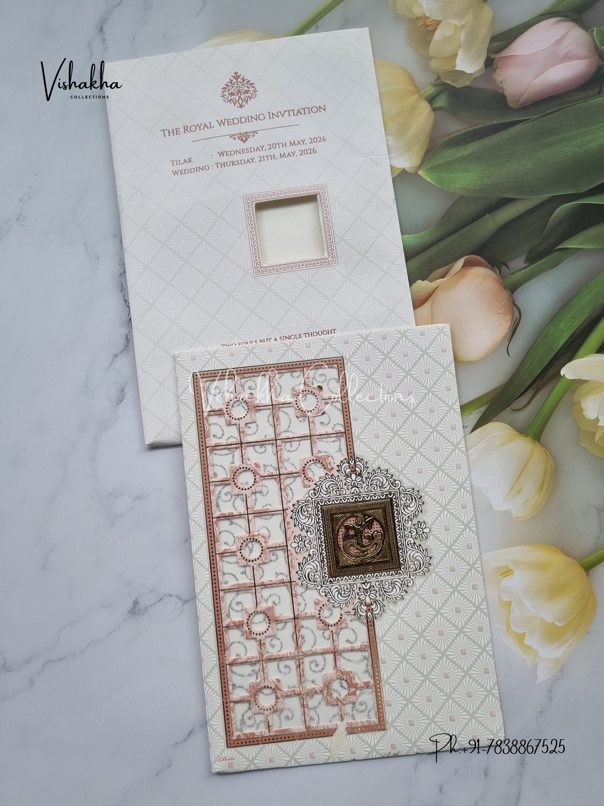 Vishakha Collections presents you beautiful luxury wedding invitation cards with all latest designs and the latest variety. Its just not a wedding invitation card but a beautiful feeling of love and relationship it carries for you. Beautifully printed and packed with a bundle of love. if you like it, dont think again, just go for it.If you are worrying about the quality of the product, send your doubts to us. We are here to help you. If you want in wholesale or bulk, dont forget to contact us.