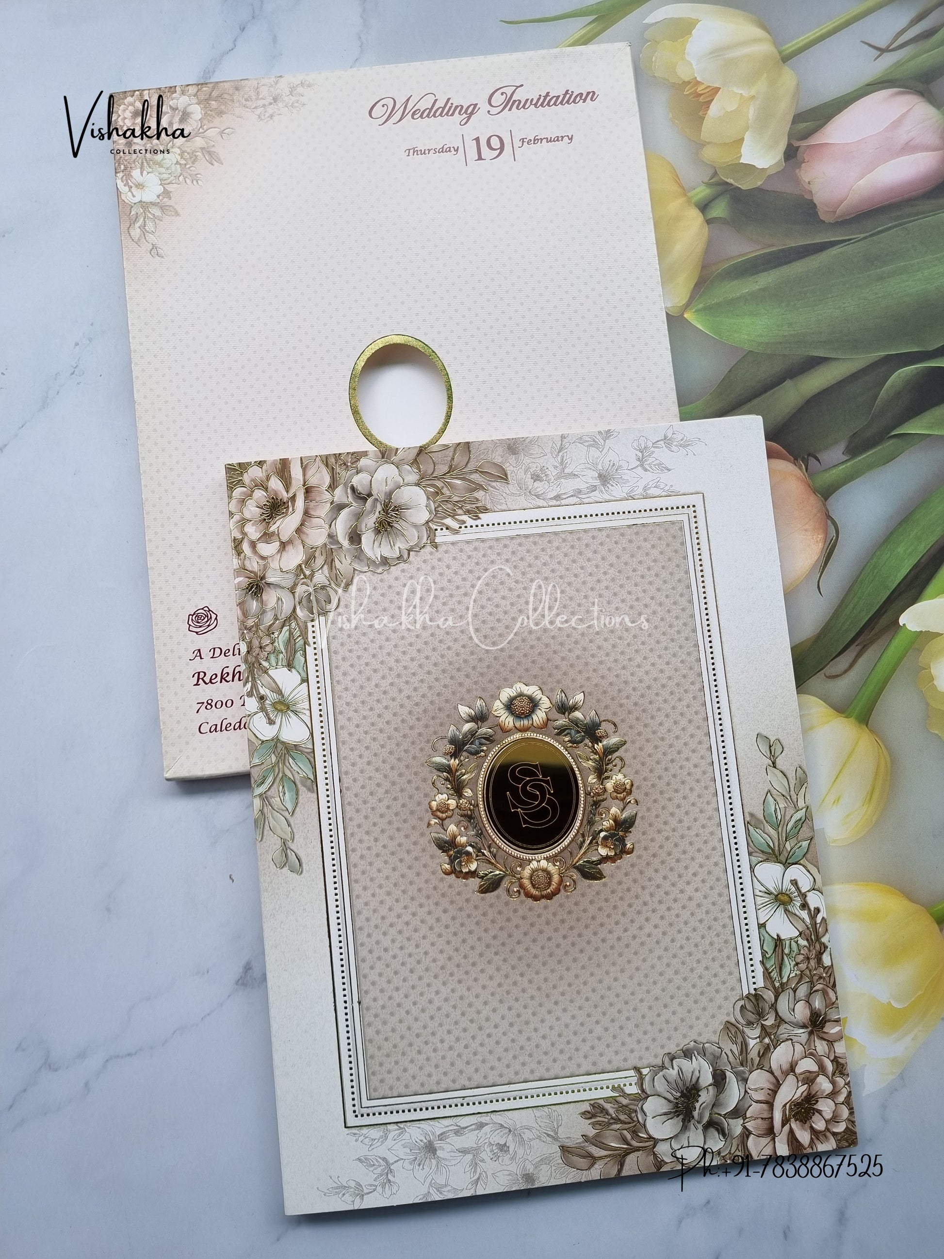 Vishakha Collections presents you beautiful luxury wedding invitation cards with all latest designs and the latest variety. Its just not a wedding invitation card but a beautiful feeling of love and relationship it carries for you. Beautifully printed and packed with a bundle of love. if you like it, dont think again, just go for it.If you are worrying about the quality of the product, send your doubts to us. We are here to help you. If you want in wholesale or bulk, dont forget to contact us.