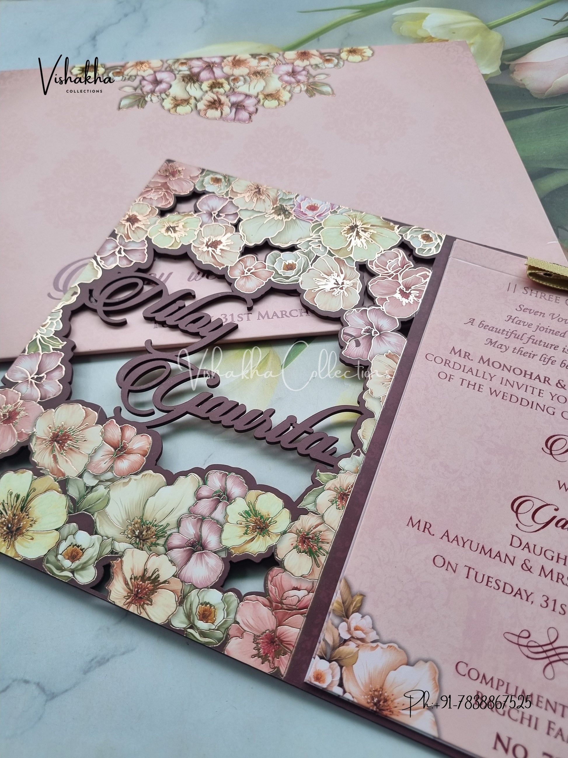 Vishakha Collections presents you beautiful luxury wedding invitation cards with all latest designs and the latest variety. Its just not a wedding invitation card but a beautiful feeling of love and relationship it carries for you. Beautifully printed and packed with a bundle of love. if you like it, dont think again, just go for it.If you are worrying about the quality of the product, send your doubts to us. We are here to help you. If you want in wholesale or bulk, dont forget to contact us.