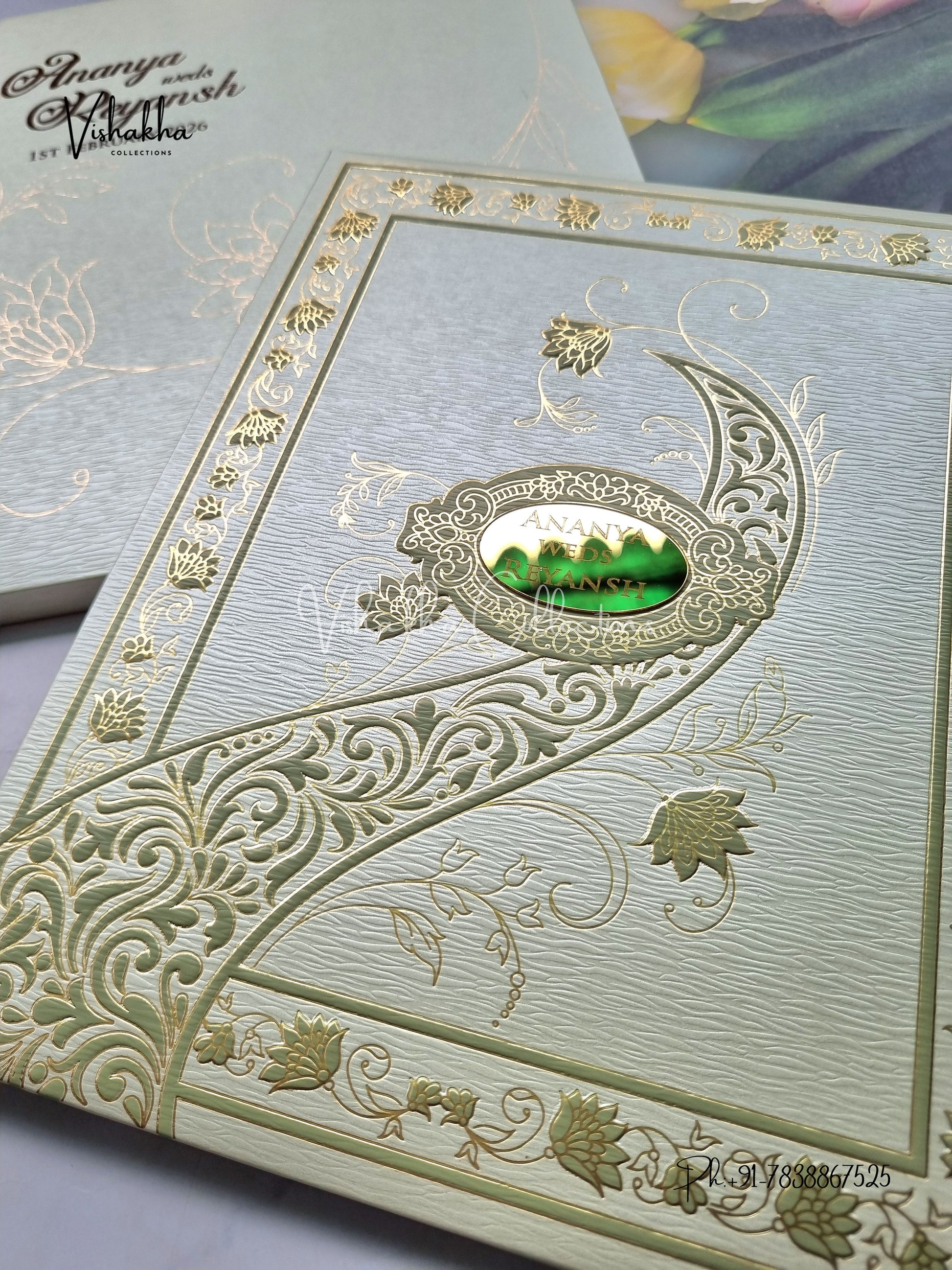 Vishakha Collections presents you beautiful luxury wedding invitation cards with all latest designs and the latest variety. Its just not a wedding invitation card but a beautiful feeling of love and relationship it carries for you. Beautifully printed and packed with a bundle of love. if you like it, dont think again, just go for it.If you are worrying about the quality of the product, send your doubts to us. We are here to help you. If you want in wholesale or bulk, dont forget to contact us.