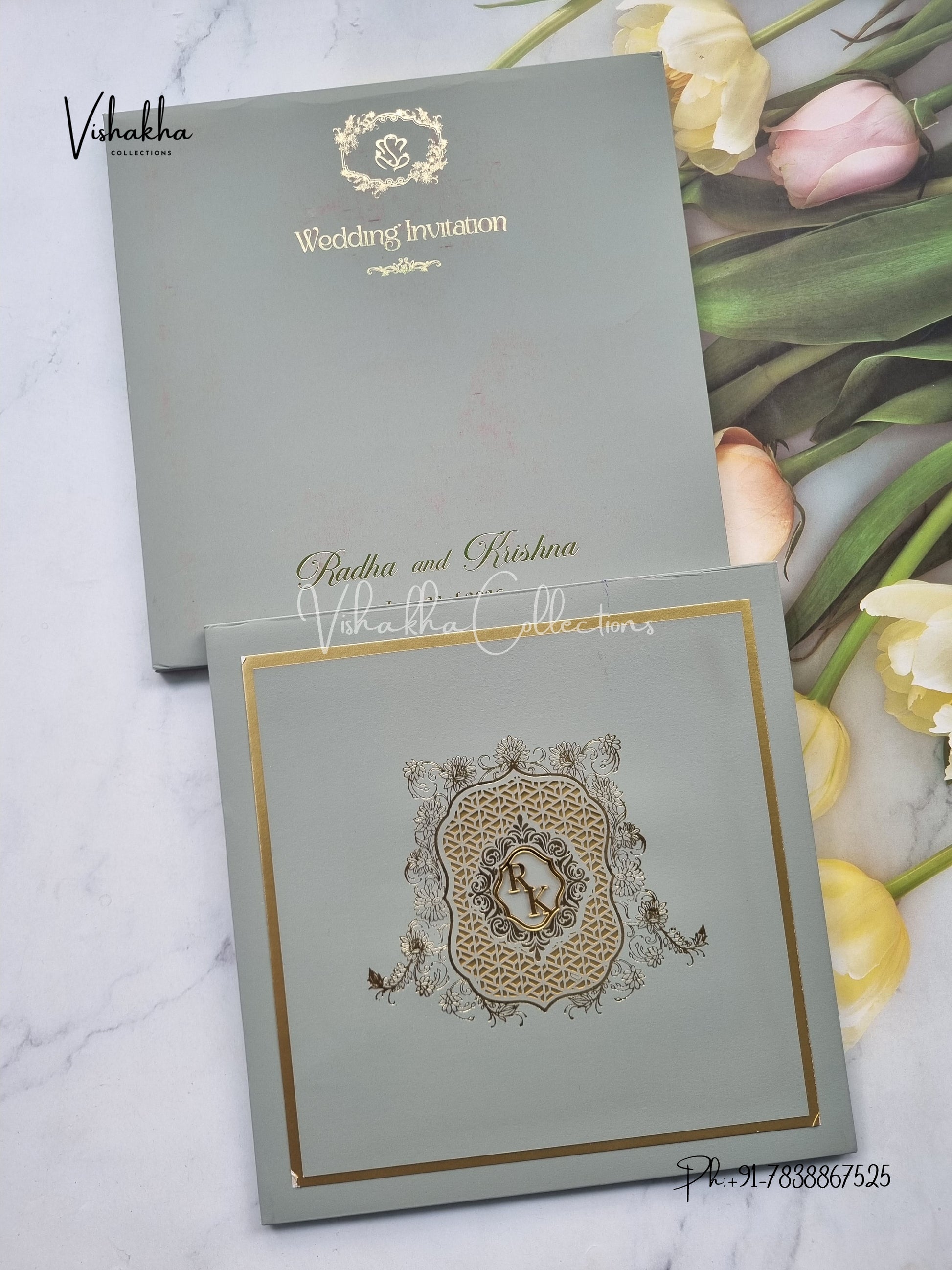 Vishakha Collections presents you beautiful luxury wedding invitation cards with all latest designs and the latest variety. Its just not a wedding invitation card but a beautiful feeling of love and relationship it carries for you. Beautifully printed and packed with a bundle of love. if you like it, dont think again, just go for it.If you are worrying about the quality of the product, send your doubts to us. We are here to help you. If you want in wholesale or bulk, dont forget to contact us.