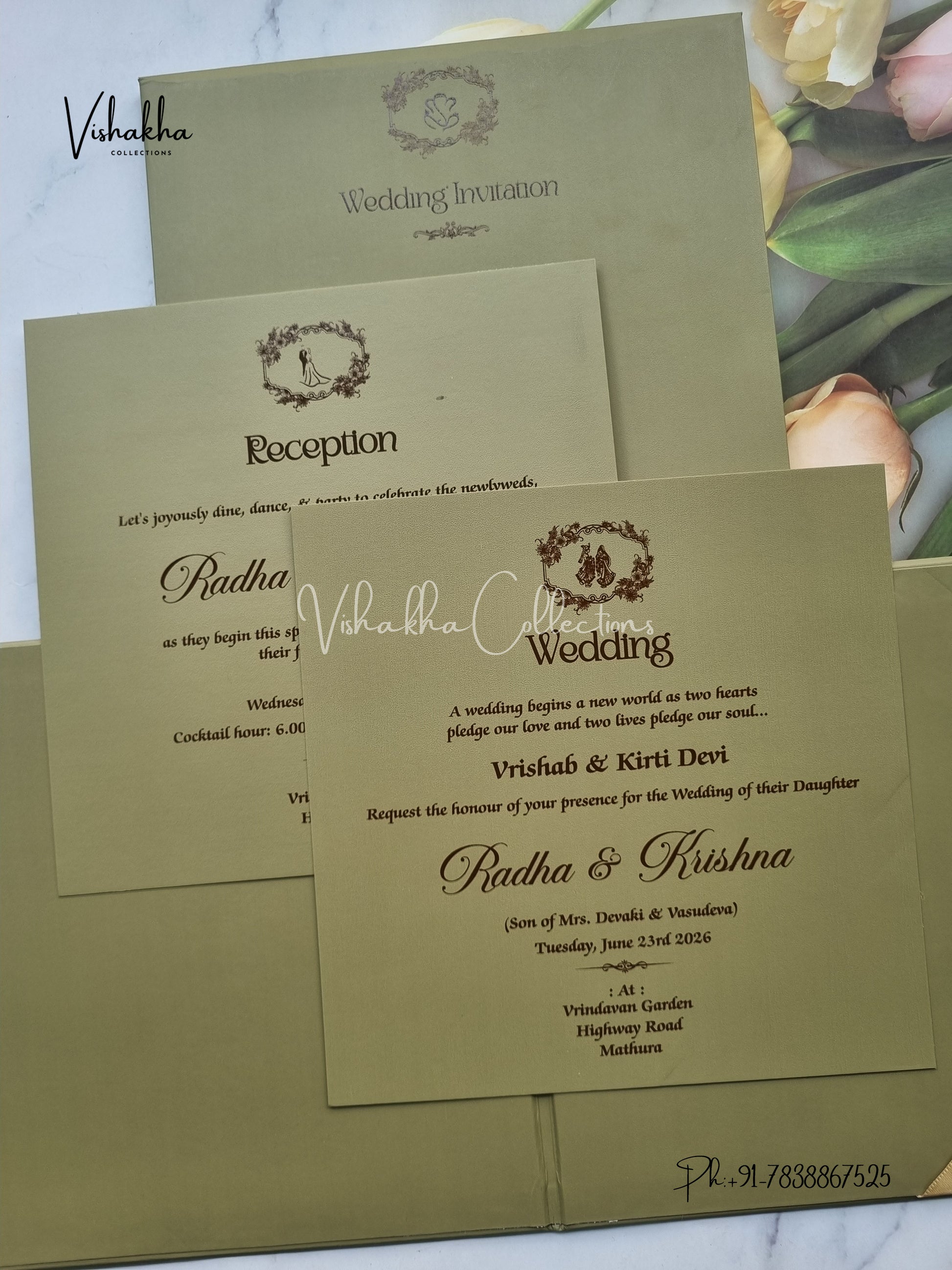Vishakha Collections presents you beautiful luxury wedding invitation cards with all latest designs and the latest variety. Its just not a wedding invitation card but a beautiful feeling of love and relationship it carries for you. Beautifully printed and packed with a bundle of love. if you like it, dont think again, just go for it.If you are worrying about the quality of the product, send your doubts to us. We are here to help you. If you want in wholesale or bulk, dont forget to contact us.