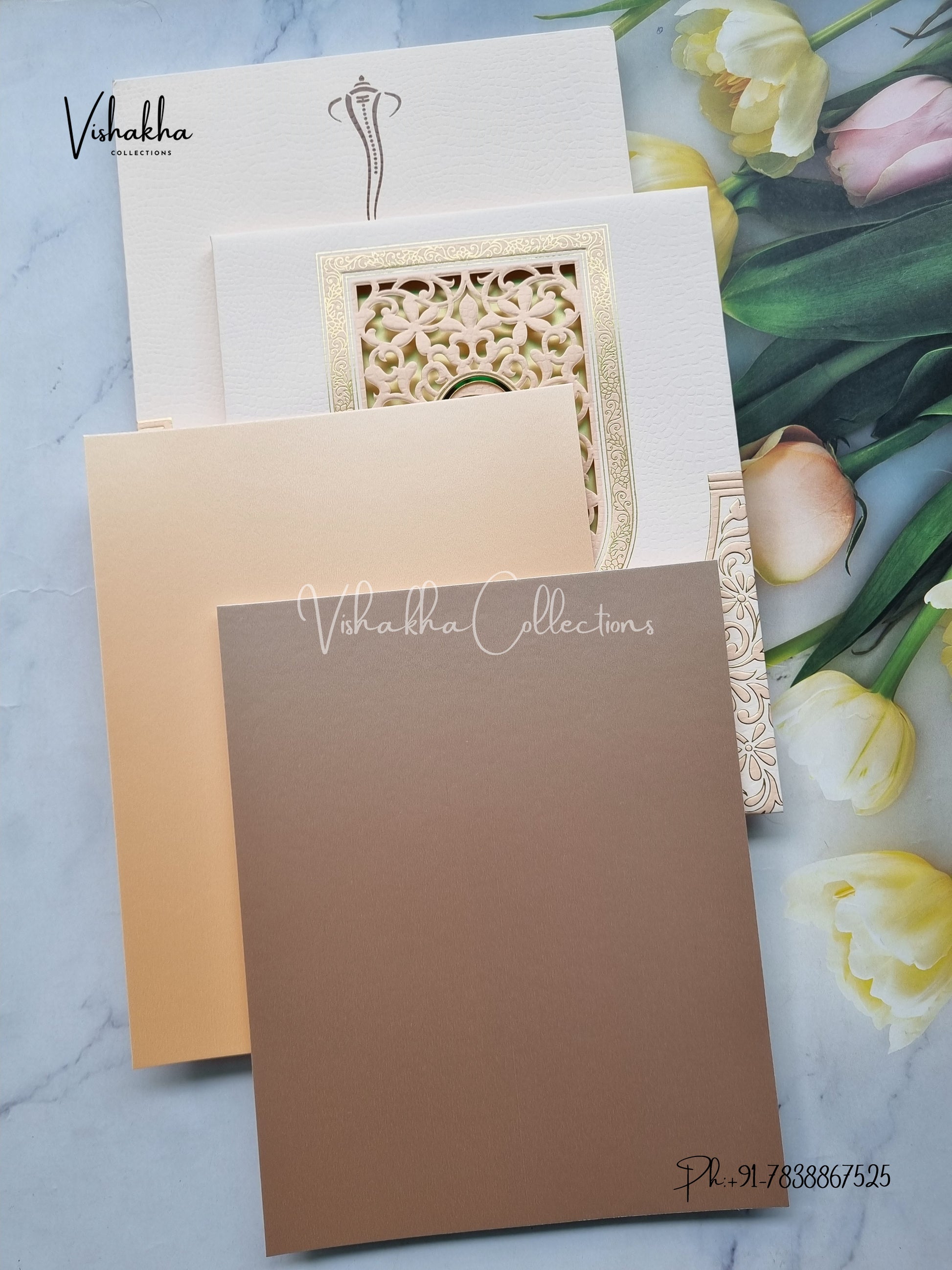 Hindu Muslim Christian Sikh Padded Laser Cut Colored invitation Cards LN-881