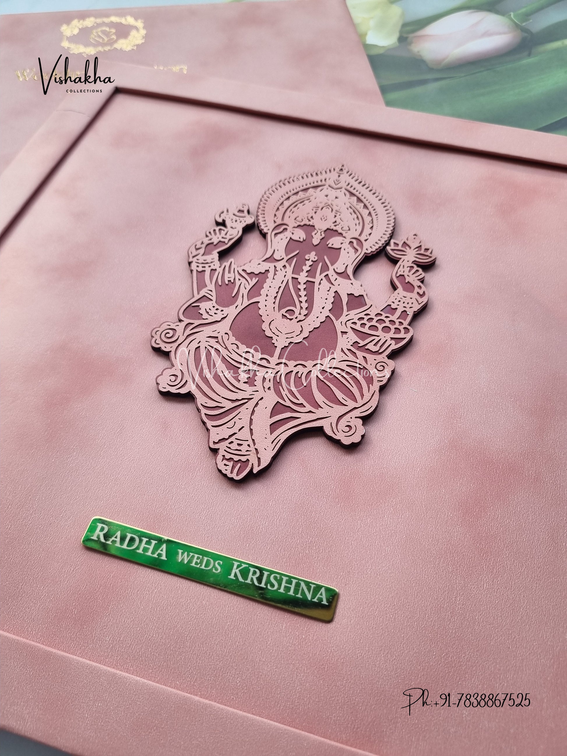 Vishakha Collections presents you beautiful luxury wedding invitation cards with all latest designs and the latest variety. Its just not a wedding invitation card but a beautiful feeling of love and relationship it carries for you. Beautifully printed and packed with a bundle of love. if you like it, dont think again, just go for it.If you are worrying about the quality of the product, send your doubts to us. We are here to help you. If you want in wholesale or bulk, dont forget to contact us.