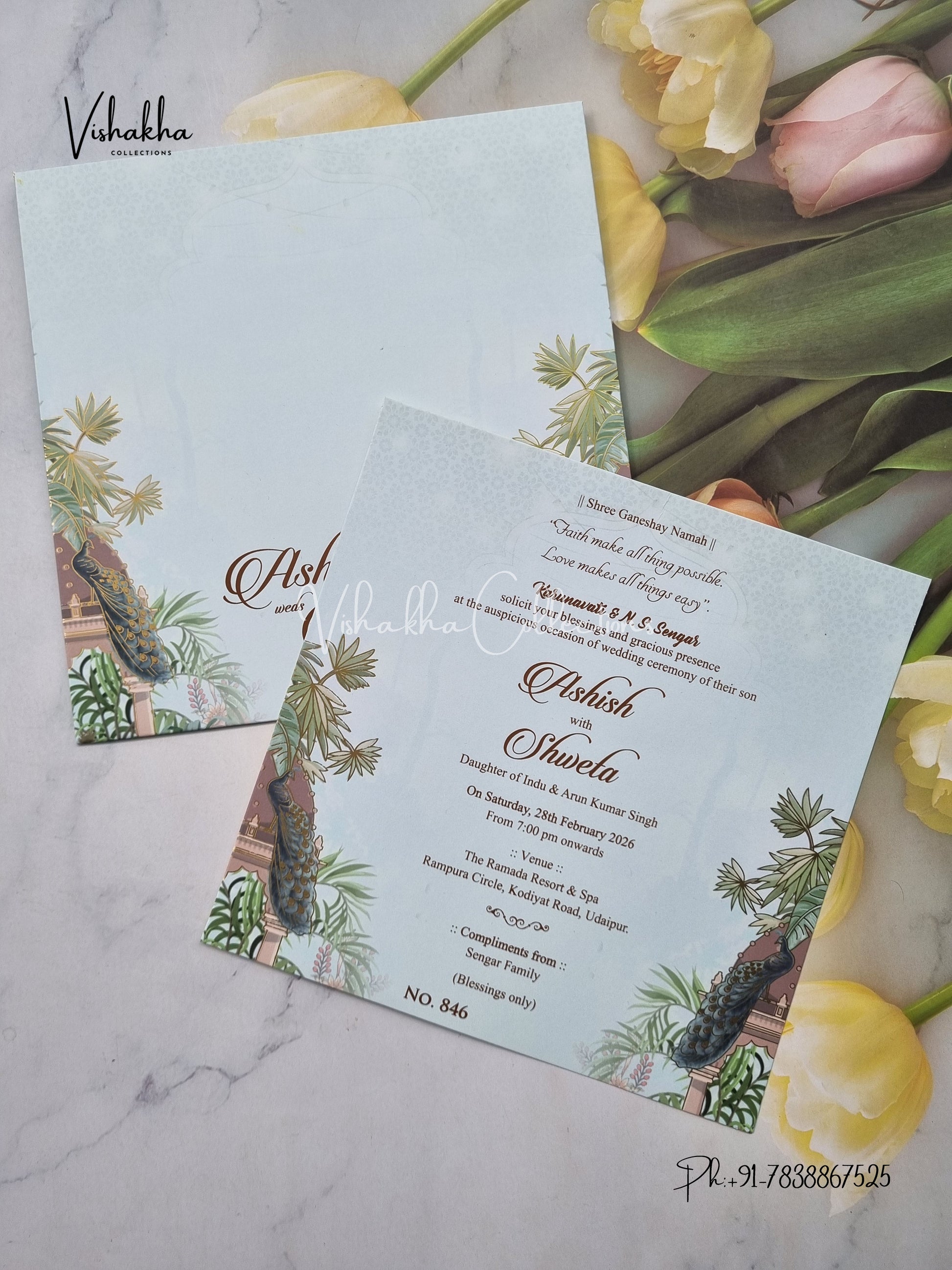 Peacock Flower Hindu Muslim Christian Sikh invitation Cards LN-846