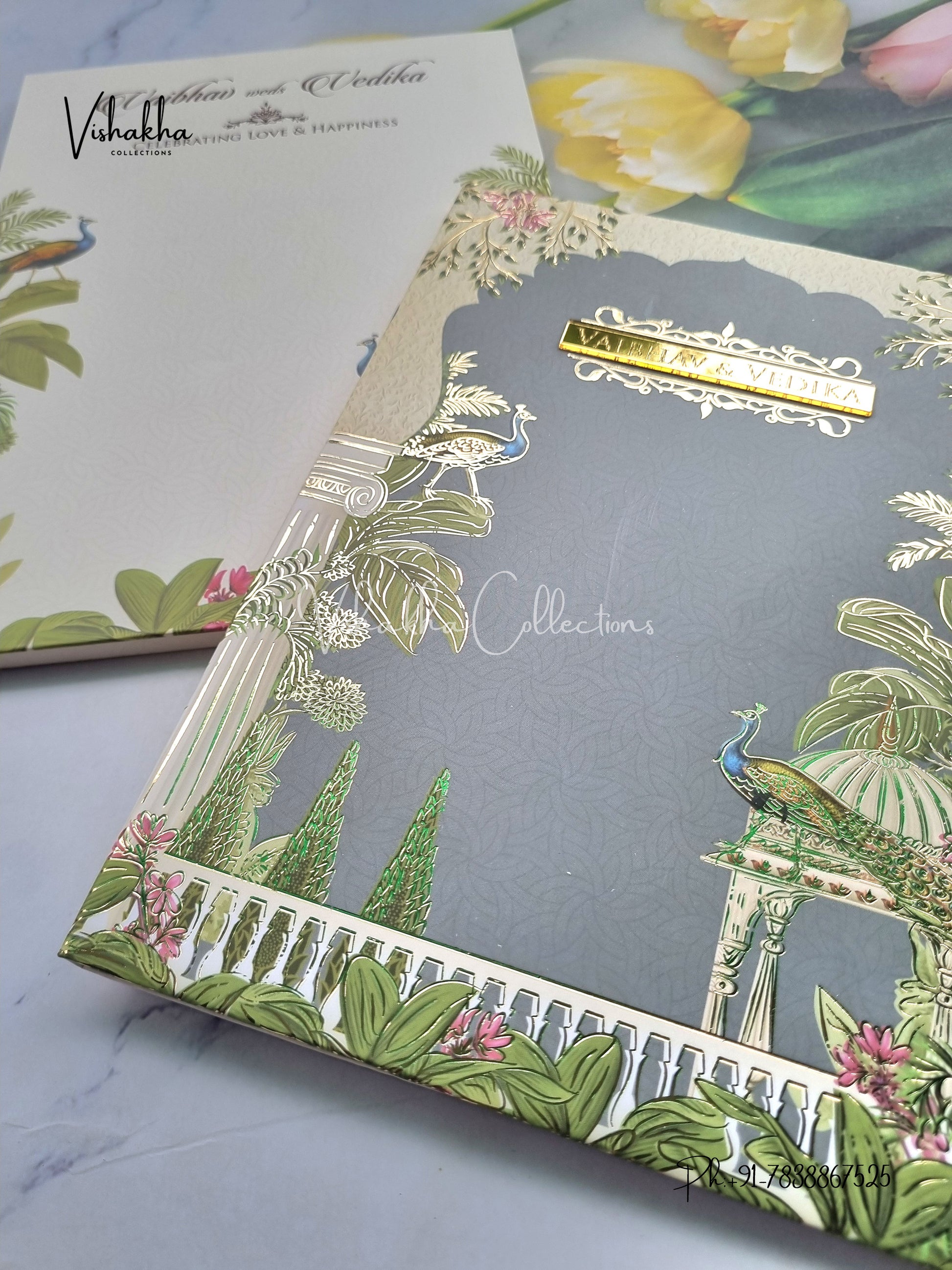 Vishakha Collections presents you beautiful luxury wedding invitation cards with all latest designs and the latest variety. Its just not a wedding invitation card but a beautiful feeling of love and relationship it carries for you. Beautifully printed and packed with a bundle of love. if you like it, dont think again, just go for it.If you are worrying about the quality of the product, send your doubts to us. We are here to help you. If you want in wholesale or bulk, dont forget to contact us.