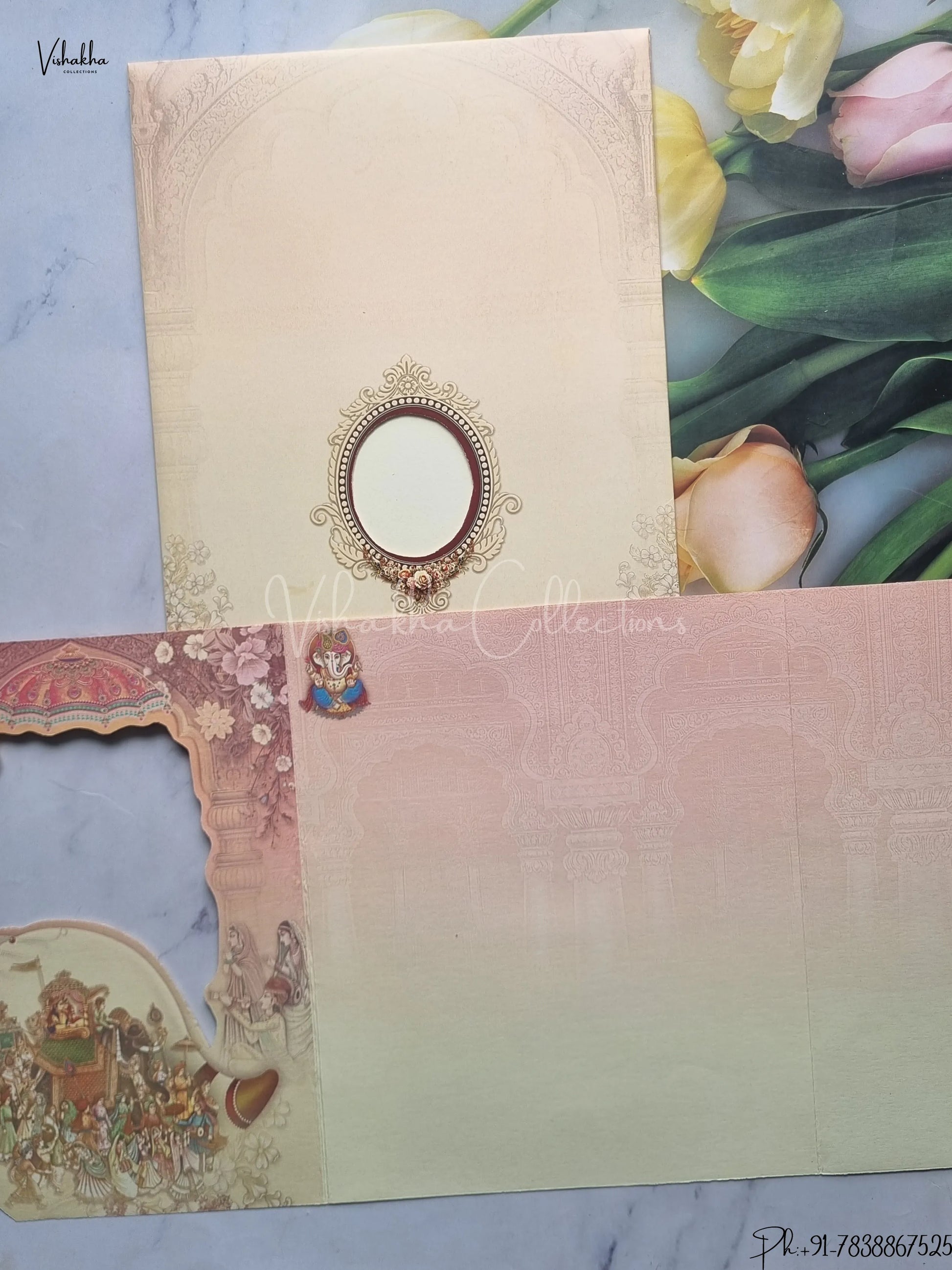 Vishakha Collections presents you beautiful luxury wedding invitation cards with all latest designs and the latest variety. Its just not a wedding invitation card but a beautiful feeling of love and relationship it carries for you. Beautifully printed and packed with a bundle of love. if you like it, dont think again, just go for it.If you are worrying about the quality of the product, send your doubts to us. We are here to help you. If you want in wholesale or bulk, dont forget to contact us.