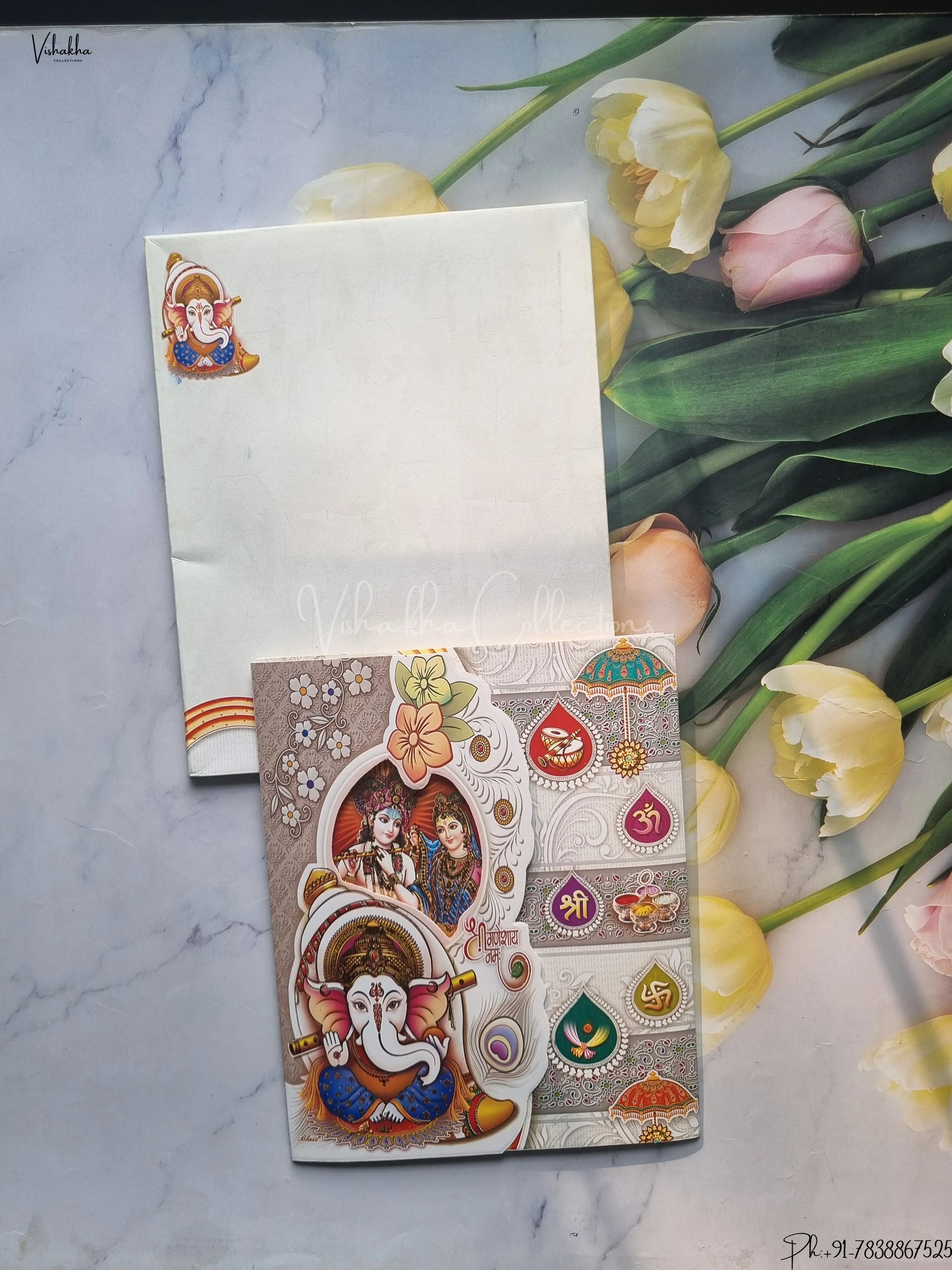 Radha Krishna Semi Box Ganesh Ji Hindu Cream Multicolor Colored wedding invitation Cards GS-5037