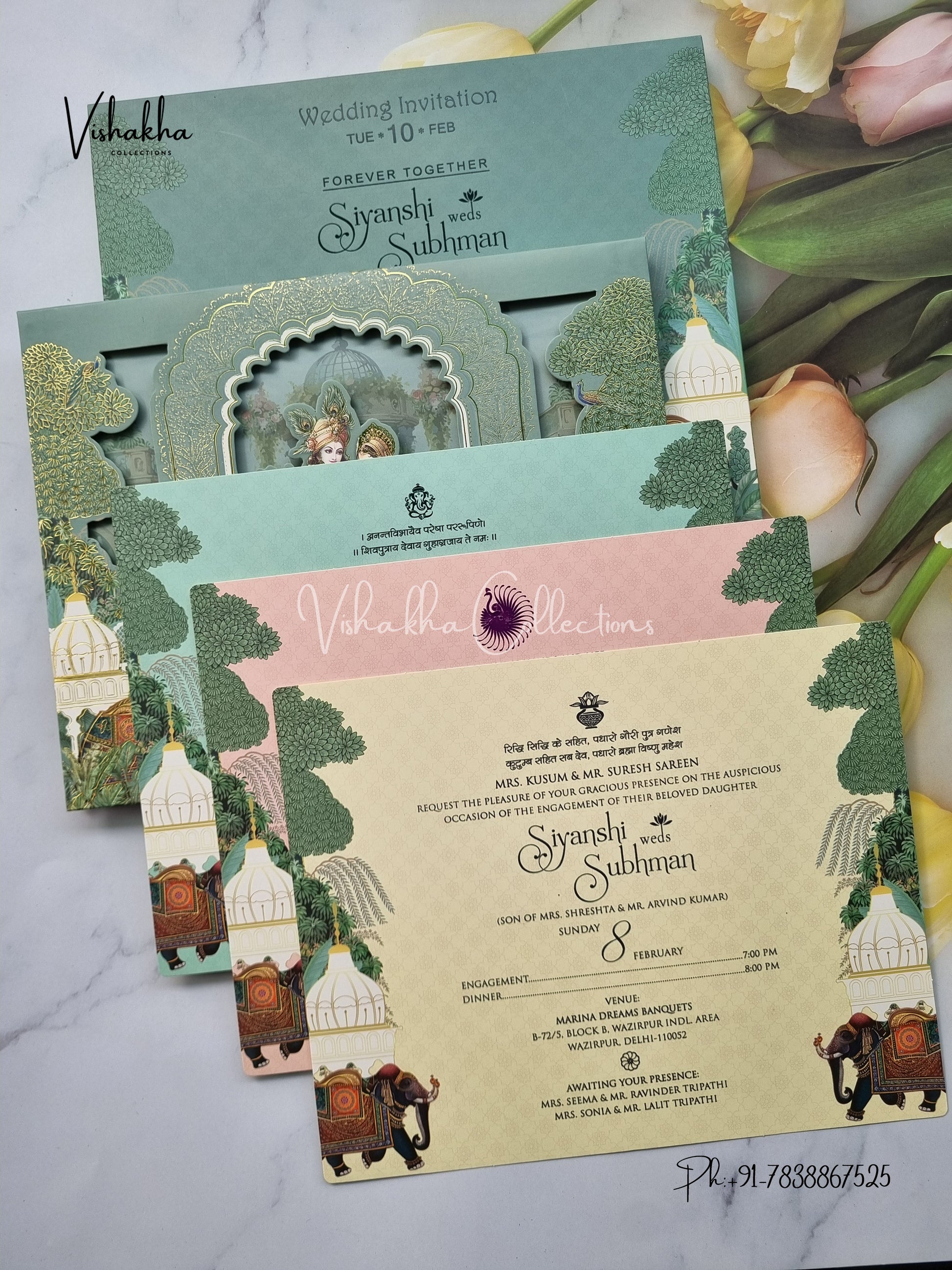 Radha Krishna Semi Box Hathi Hindu Padded invitation Cards EJ-5002