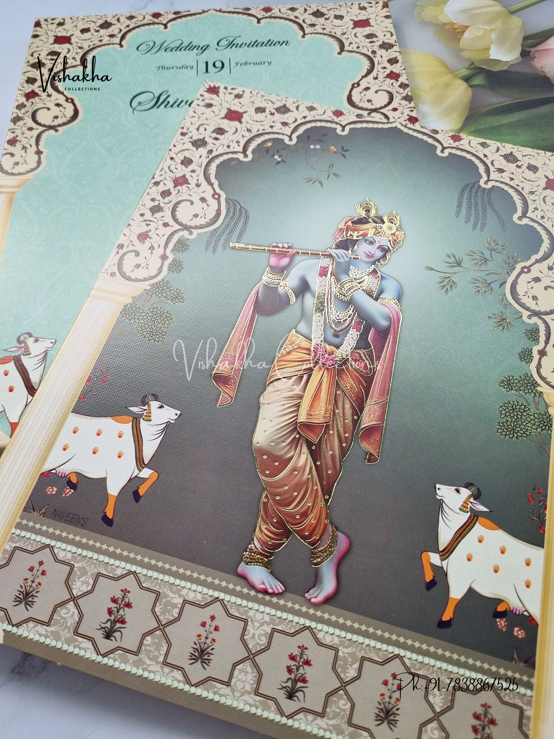 Radha Krishna Semi Box Hindu invitation Cards EJ-5126