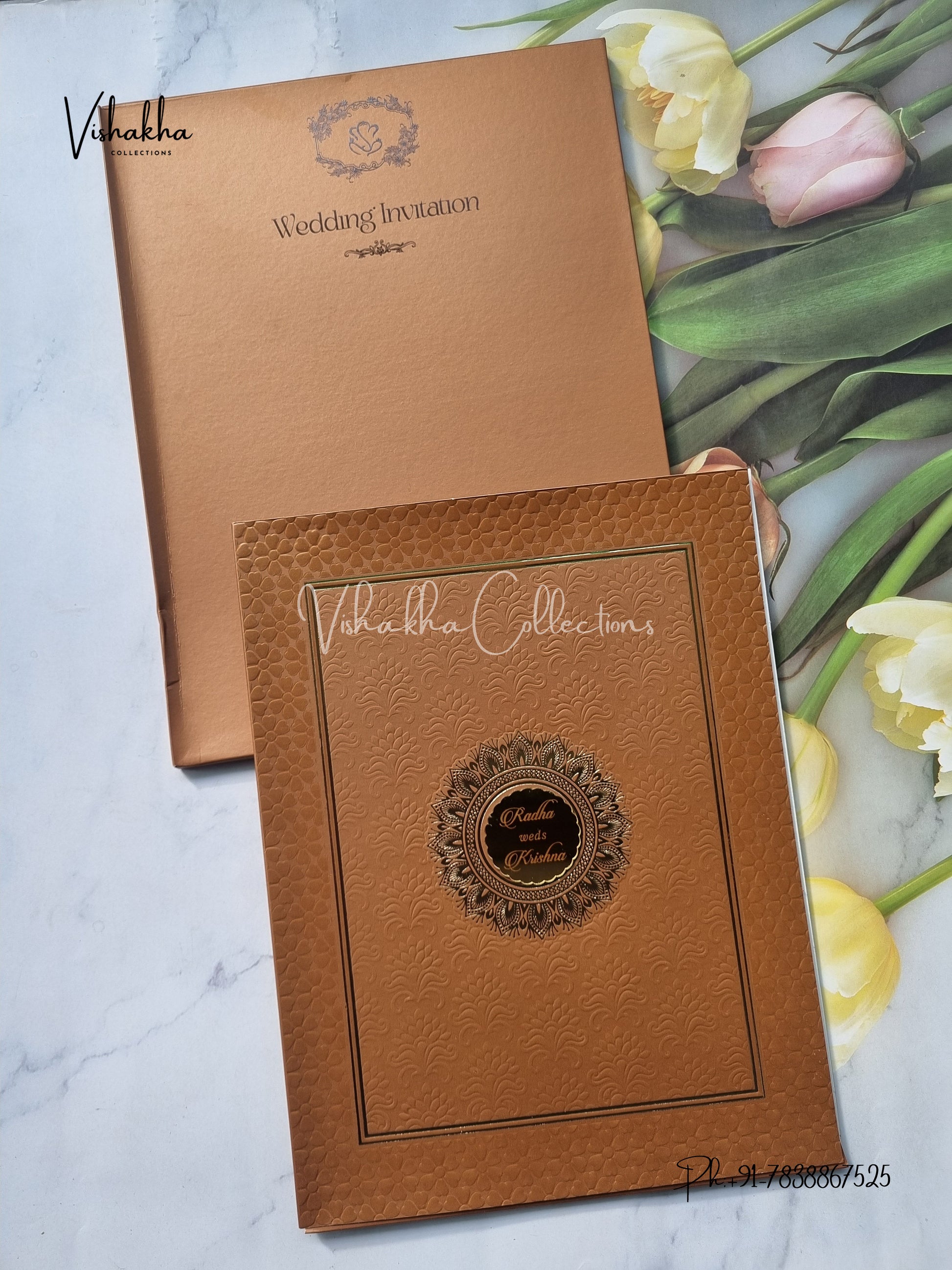 Vishakha Collections presents you beautiful luxury wedding invitation cards with all latest designs and the latest variety. Its just not a wedding invitation card but a beautiful feeling of love and relationship it carries for you. Beautifully printed and packed with a bundle of love. if you like it, dont think again, just go for it.If you are worrying about the quality of the product, send your doubts to us. We are here to help you. If you want in wholesale or bulk, dont forget to contact us.