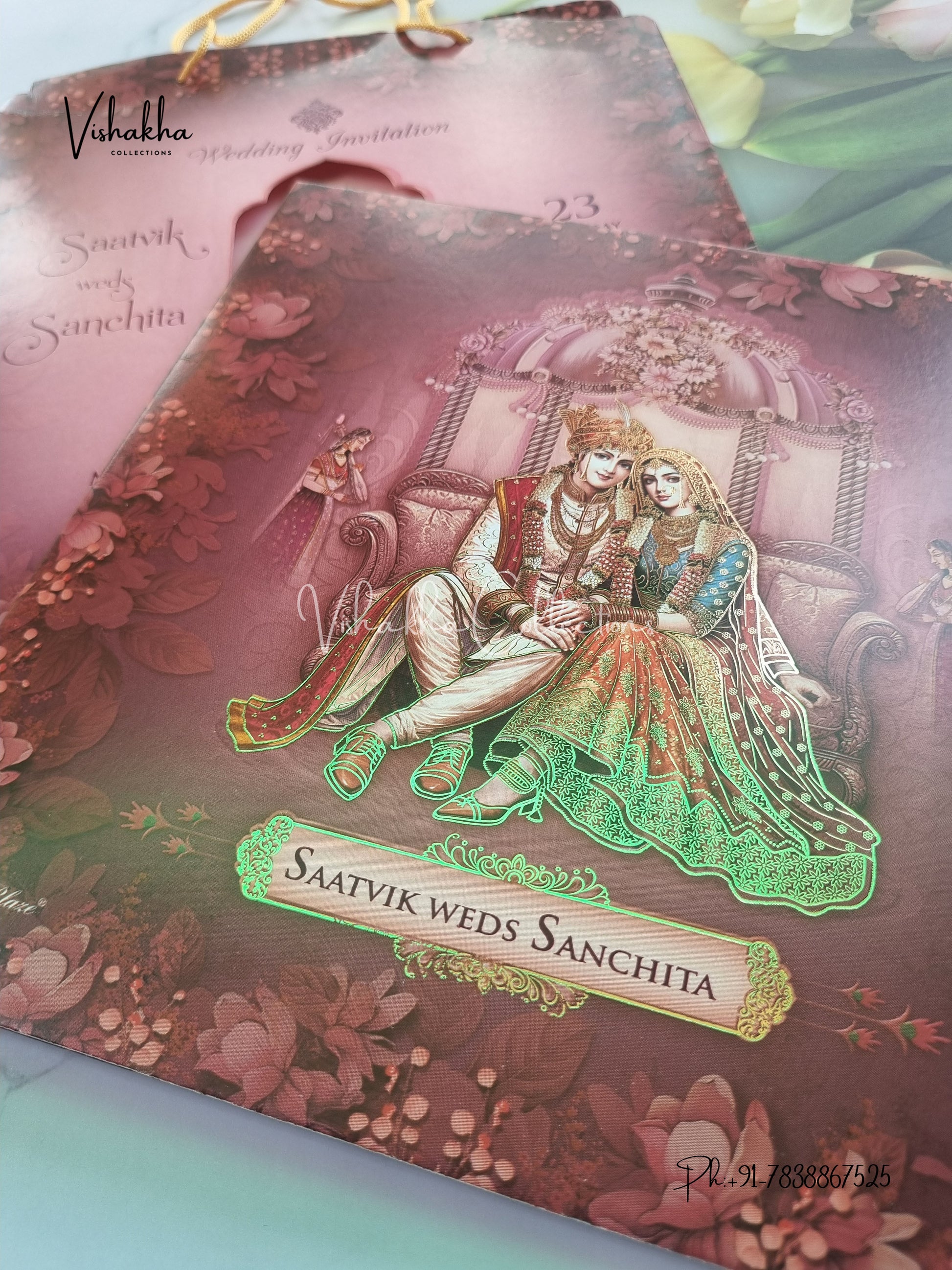 Semi Box Dulah Dulhan Hindu Sikh Carry Bag invitation Cards CR-7097