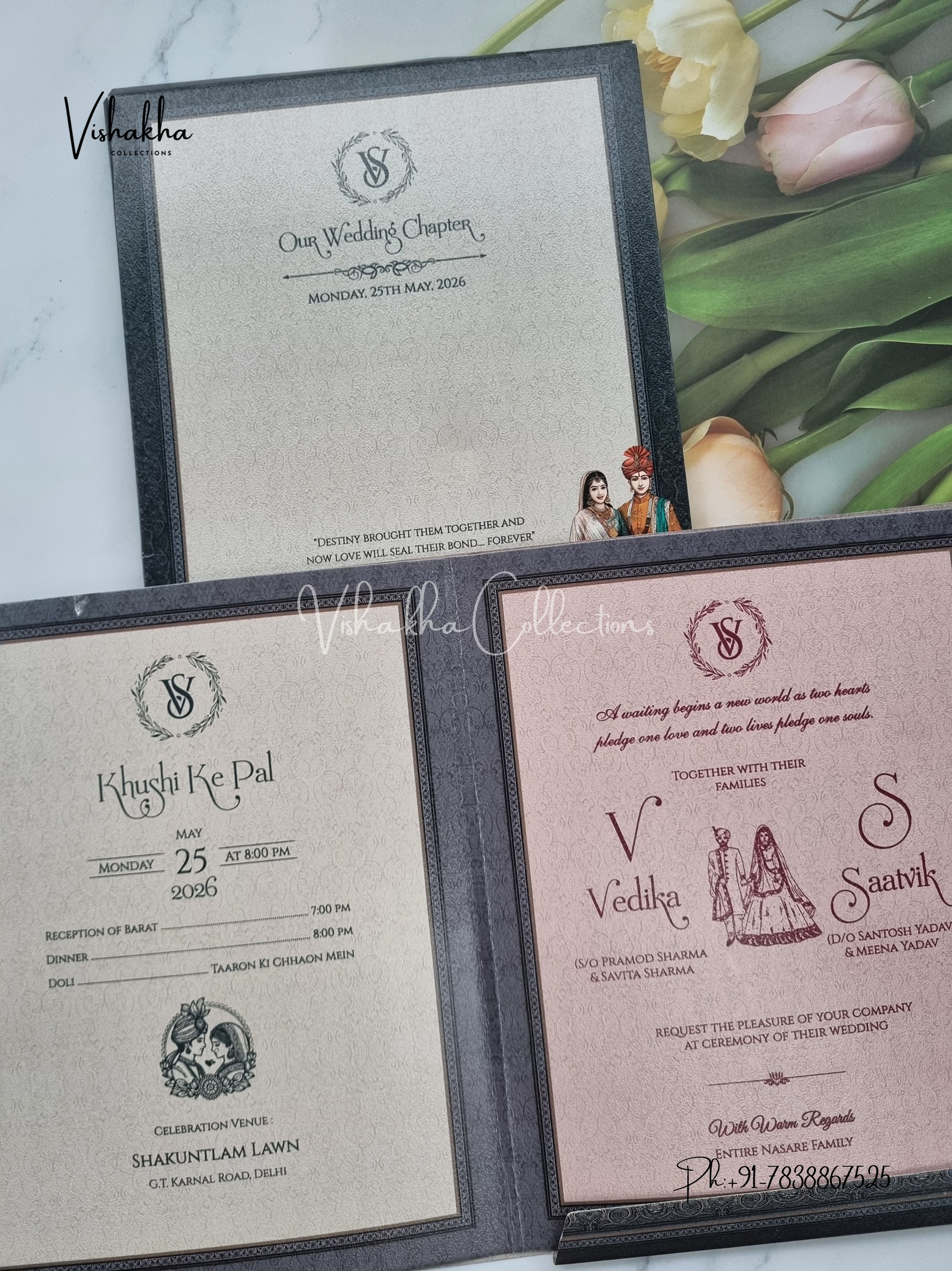 Vishakha Collections presents you beautiful luxury wedding invitation cards with all latest designs and the latest variety. Its just not a wedding invitation card but a beautiful feeling of love and relationship it carries for you. Beautifully printed and packed with a bundle of love. if you like it, dont think again, just go for it.If you are worrying about the quality of the product, send your doubts to us. We are here to help you. If you want in wholesale or bulk, dont forget to contact us.