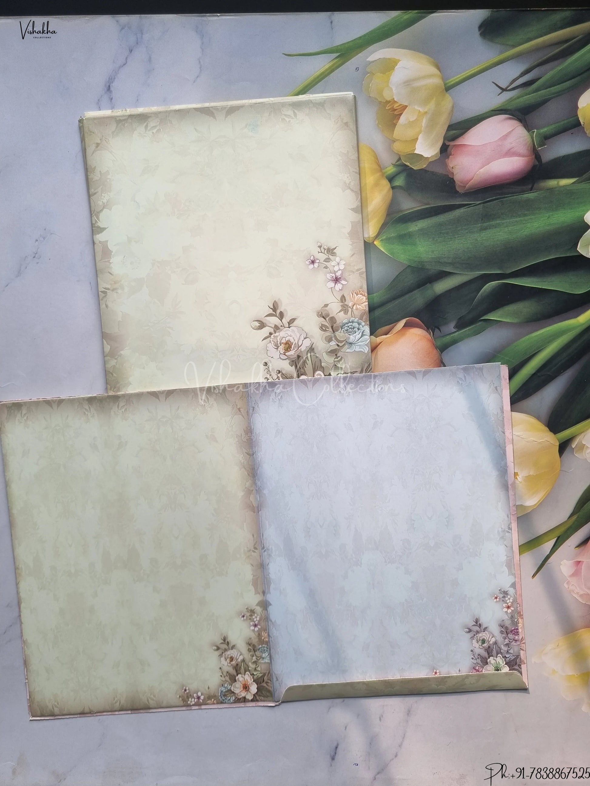 Vishakha Collections presents you beautiful luxury wedding invitation cards with all latest designs and the latest variety. Its just not a wedding invitation card but a beautiful feeling of love and relationship it carries for you. Beautifully printed and packed with a bundle of love. if you like it, dont think again, just go for it.If you are worrying about the quality of the product, send your doubts to us. We are here to help you. If you want in wholesale or bulk, dont forget to contact us.