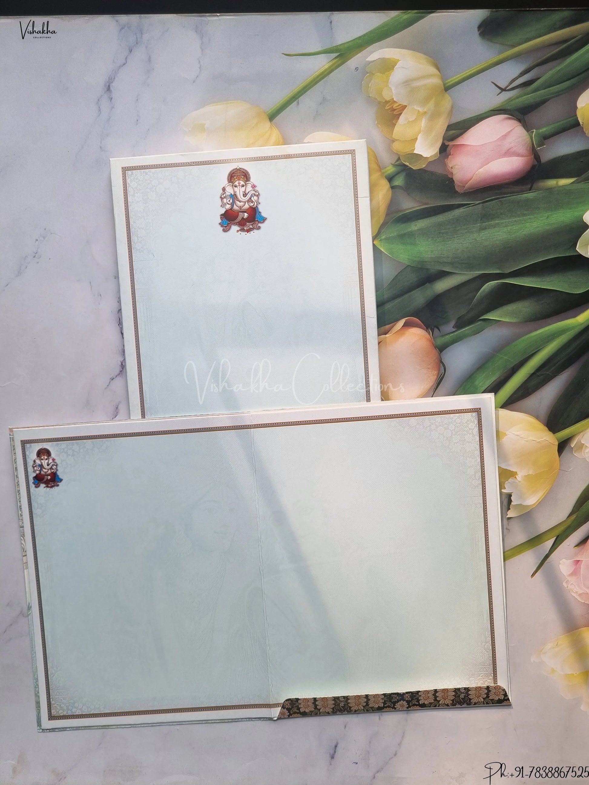 Vishakha Collections presents you beautiful luxury wedding invitation cards with all latest designs and the latest variety. Its just not a wedding invitation card but a beautiful feeling of love and relationship it carries for you. Beautifully printed and packed with a bundle of love. if you like it, dont think again, just go for it.If you are worrying about the quality of the product, send your doubts to us. We are here to help you. If you want in wholesale or bulk, dont forget to contact us.