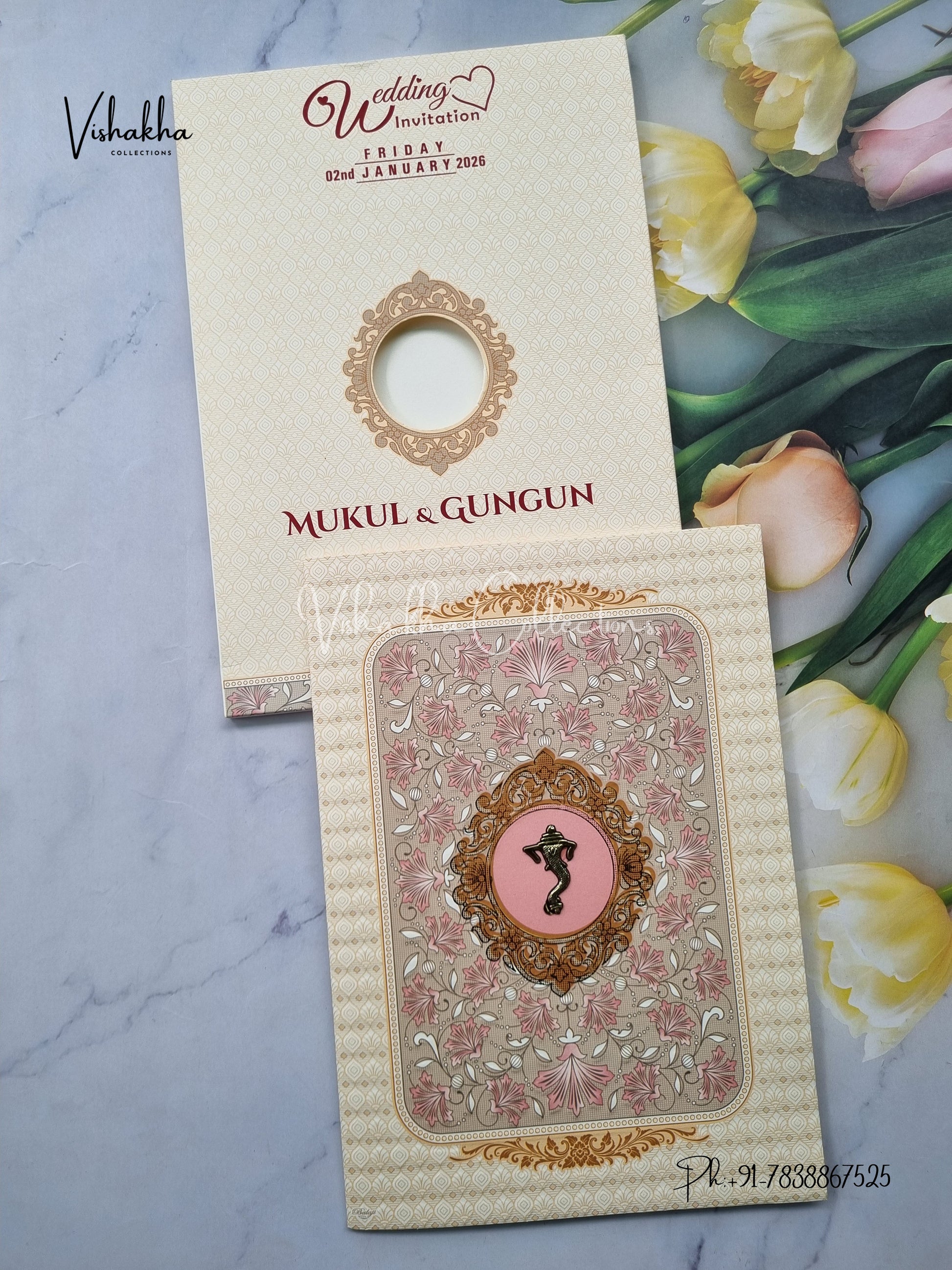 Vishakha Collections presents you beautiful luxury wedding invitation cards with all latest designs and the latest variety. Its just not a wedding invitation card but a beautiful feeling of love and relationship it carries for you. Beautifully printed and packed with a bundle of love. if you like it, dont think again, just go for it.If you are worrying about the quality of the product, send your doubts to us. We are here to help you. If you want in wholesale or bulk, dont forget to contact us.