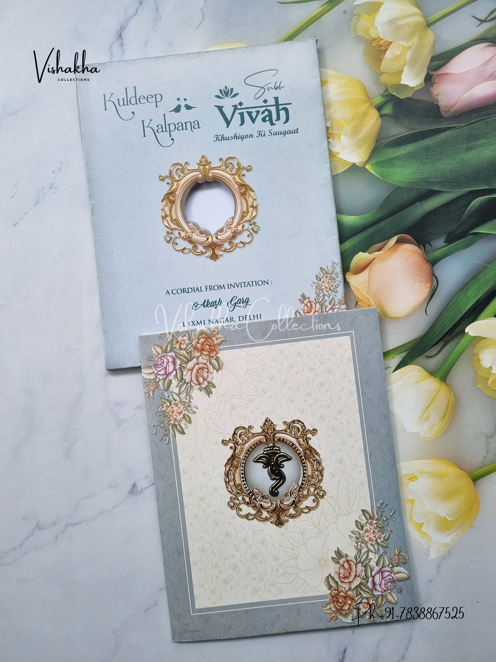 Vishakha Collections presents you beautiful luxury wedding invitation cards with all latest designs and the latest variety. Its just not a wedding invitation card but a beautiful feeling of love and relationship it carries for you. Beautifully printed and packed with a bundle of love. if you like it, dont think again, just go for it.If you are worrying about the quality of the product, send your doubts to us. We are here to help you. If you want in wholesale or bulk, dont forget to contact us.