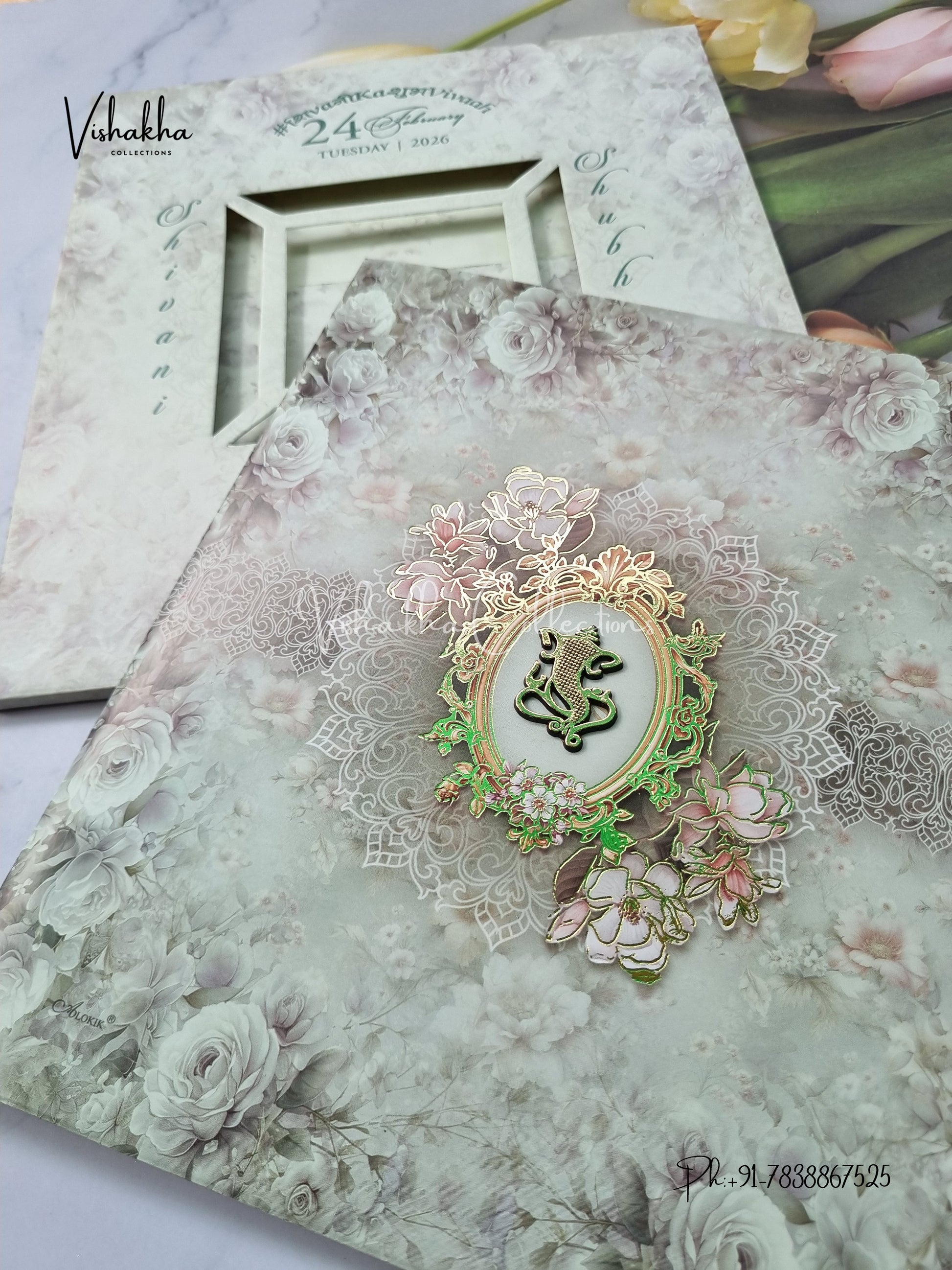Semi Box Flower Hindu Muslim Christian Sikh invitation Cards ATS-5204