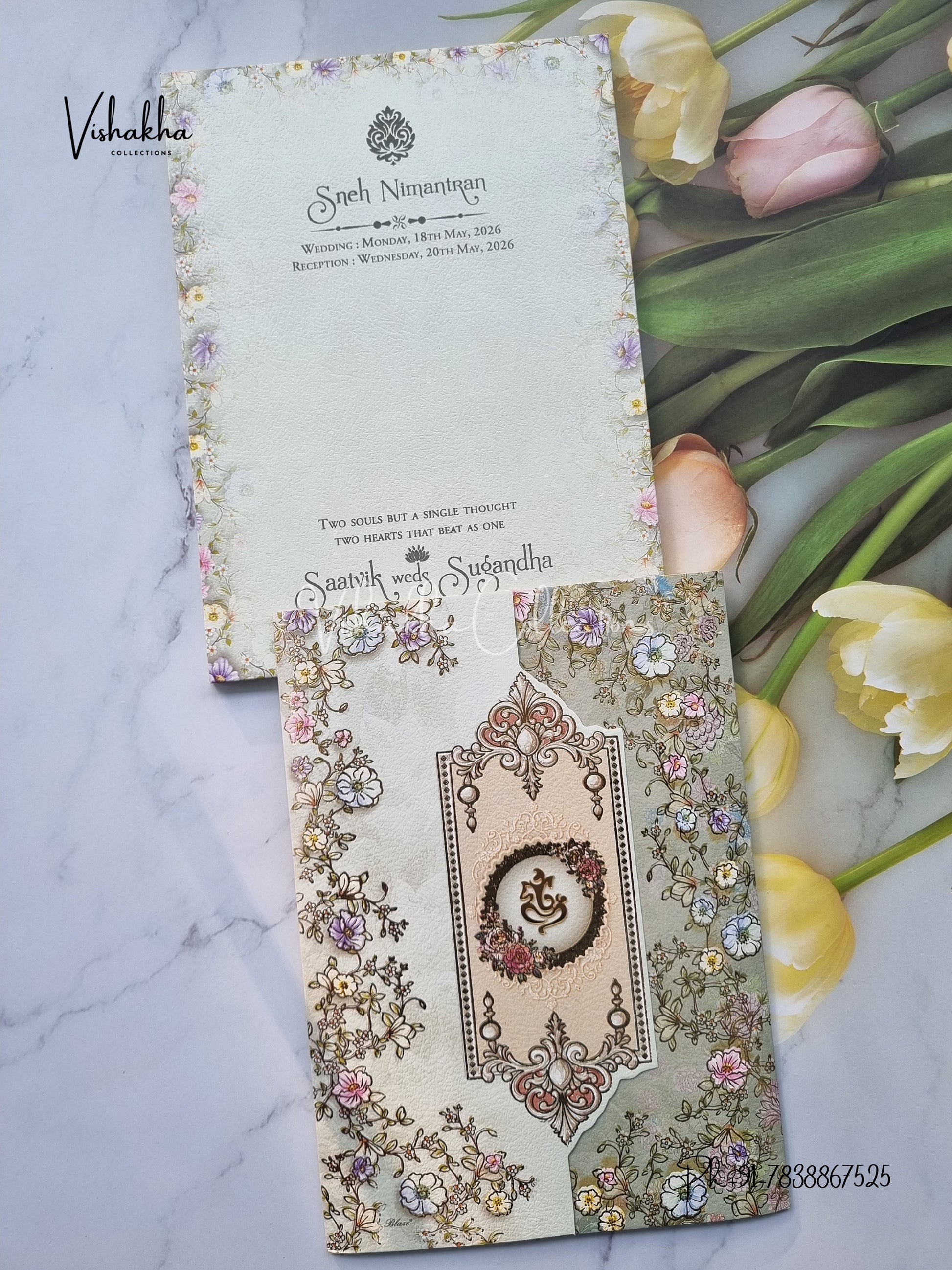 Vishakha Collections presents you beautiful luxury wedding invitation cards with all latest designs and the latest variety. Its just not a wedding invitation card but a beautiful feeling of love and relationship it carries for you. Beautifully printed and packed with a bundle of love. if you like it, dont think again, just go for it.If you are worrying about the quality of the product, send your doubts to us. We are here to help you. If you want in wholesale or bulk, dont forget to contact us.
