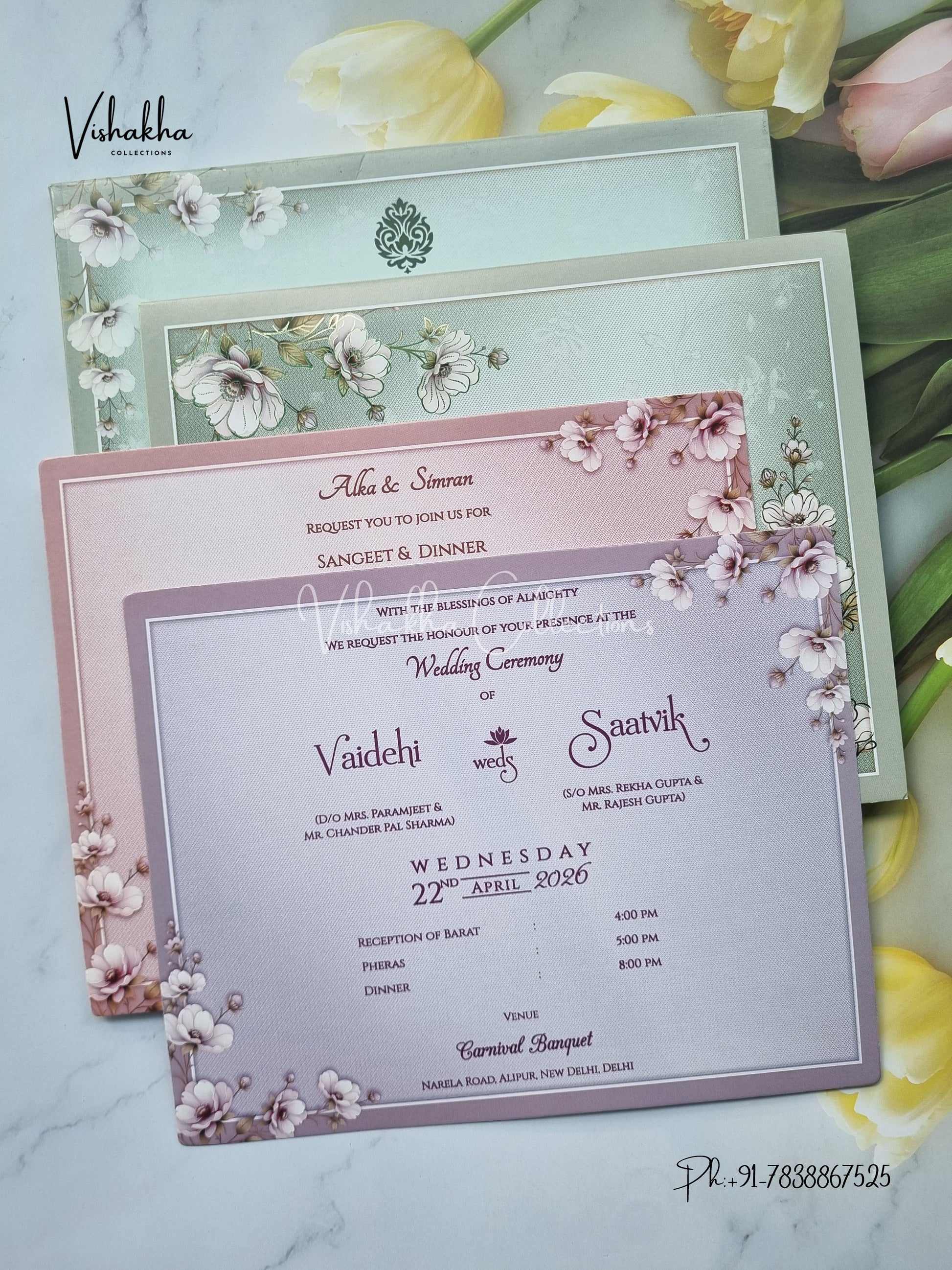 Vishakha Collections presents you beautiful luxury wedding invitation cards with all latest designs and the latest variety. Its just not a wedding invitation card but a beautiful feeling of love and relationship it carries for you. Beautifully printed and packed with a bundle of love. if you like it, dont think again, just go for it.If you are worrying about the quality of the product, send your doubts to us. We are here to help you. If you want in wholesale or bulk, dont forget to contact us.