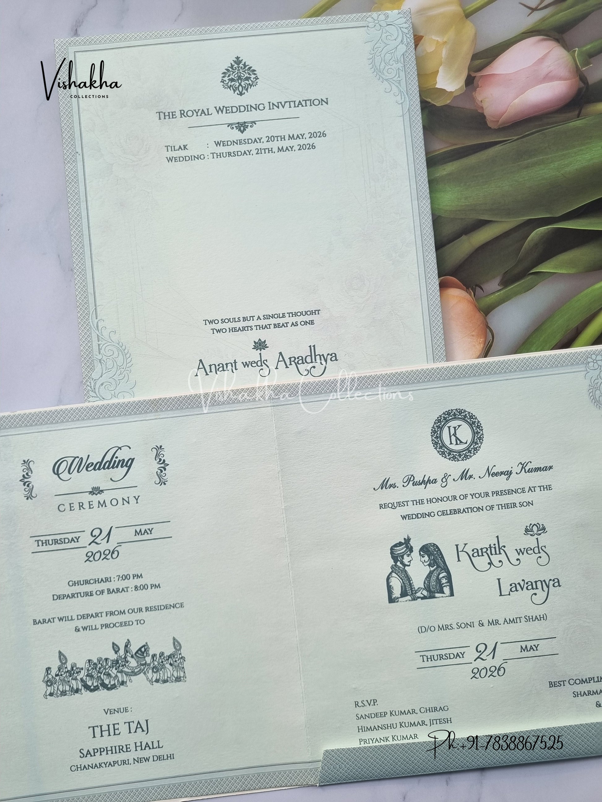 Vishakha Collections presents you beautiful luxury wedding invitation cards with all latest designs and the latest variety. Its just not a wedding invitation card but a beautiful feeling of love and relationship it carries for you. Beautifully printed and packed with a bundle of love. if you like it, dont think again, just go for it.If you are worrying about the quality of the product, send your doubts to us. We are here to help you. If you want in wholesale or bulk, dont forget to contact us.