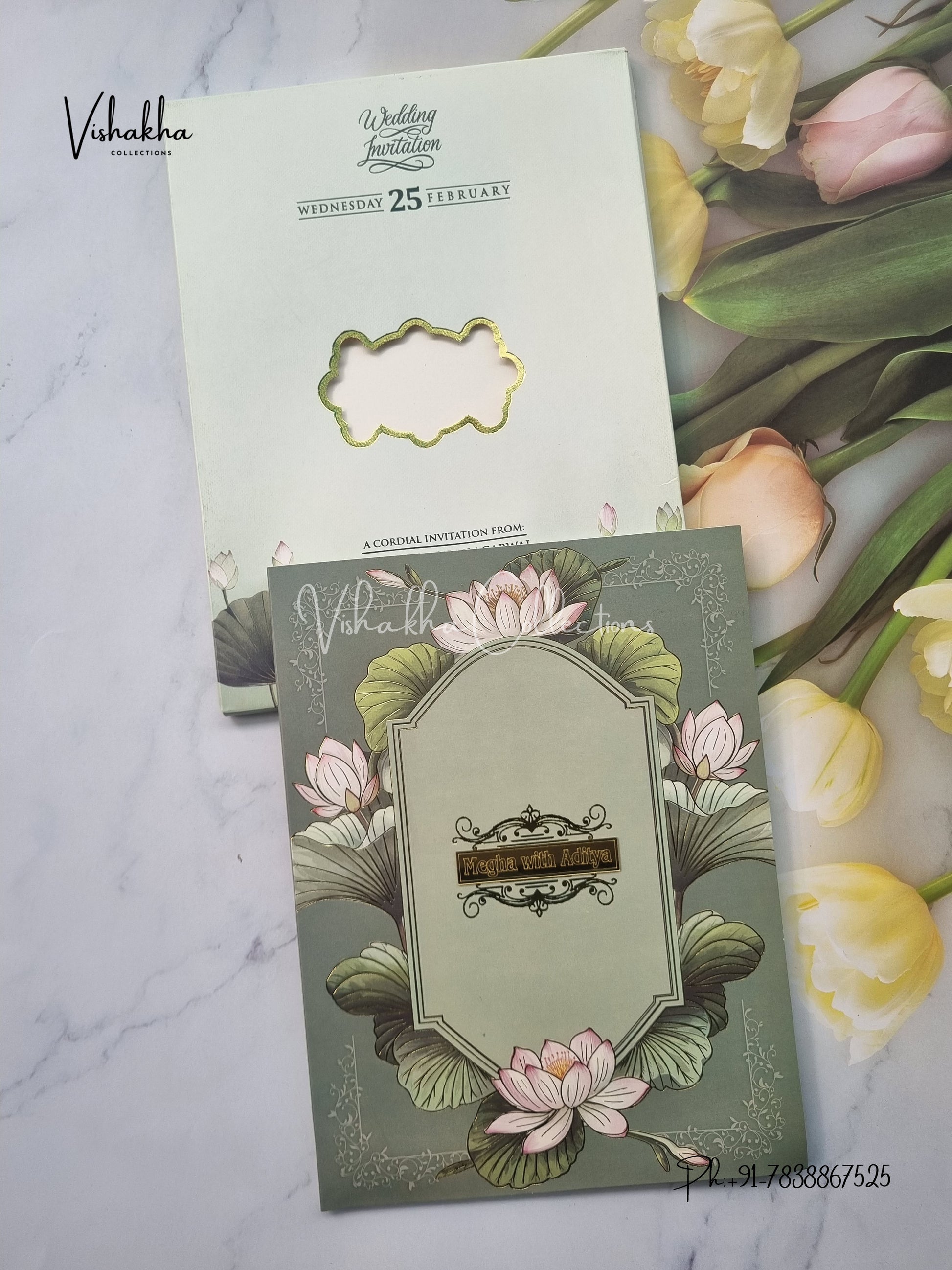 Vishakha Collections presents you beautiful luxury wedding invitation cards with all latest designs and the latest variety. Its just not a wedding invitation card but a beautiful feeling of love and relationship it carries for you. Beautifully printed and packed with a bundle of love. if you like it, dont think again, just go for it.If you are worrying about the quality of the product, send your doubts to us. We are here to help you. If you want in wholesale or bulk, dont forget to contact us.
