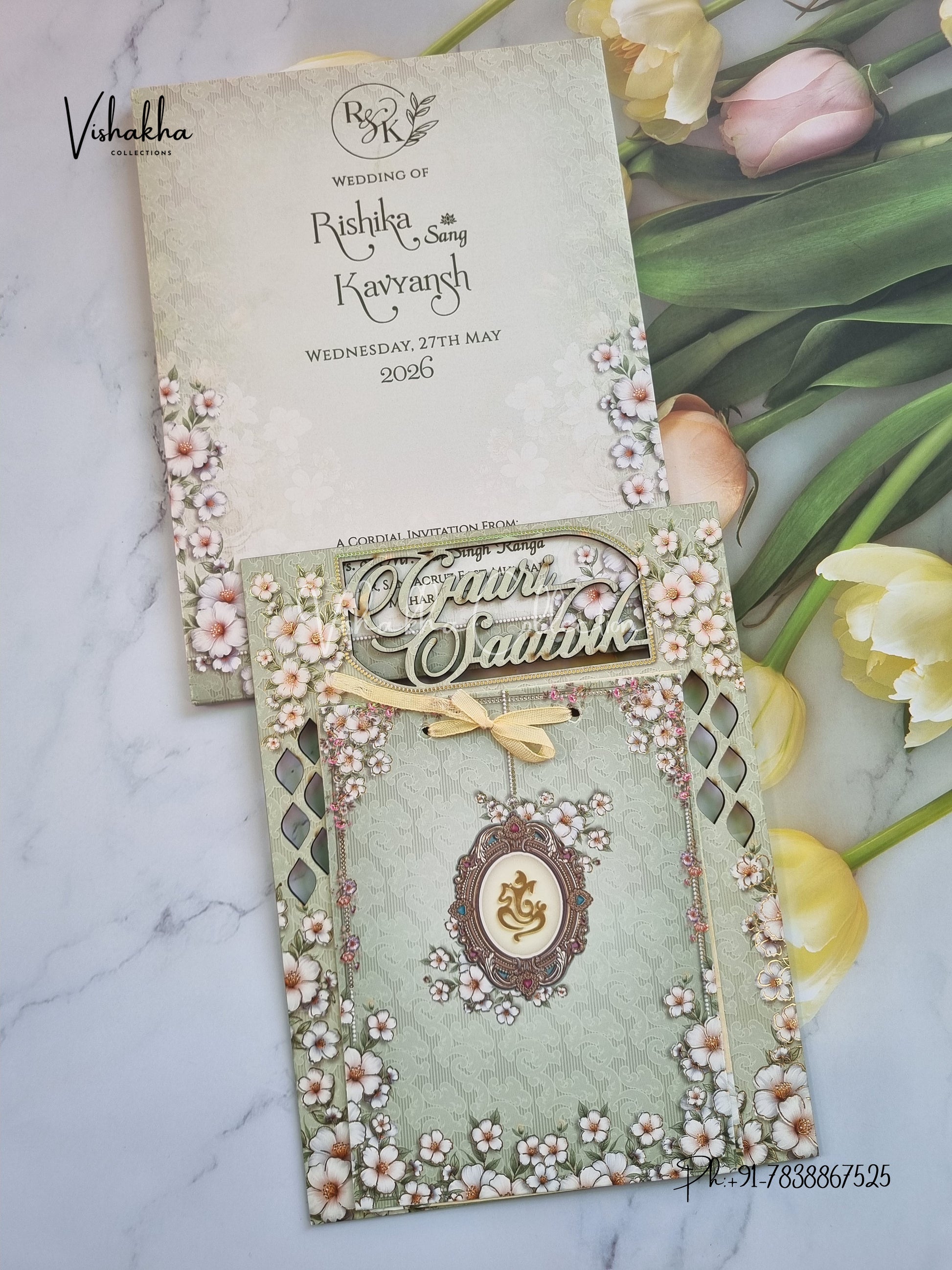 Vishakha Collections presents you beautiful luxury wedding invitation cards with all latest designs and the latest variety. Its just not a wedding invitation card but a beautiful feeling of love and relationship it carries for you. Beautifully printed and packed with a bundle of love. if you like it, dont think again, just go for it.If you are worrying about the quality of the product, send your doubts to us. We are here to help you. If you want in wholesale or bulk, dont forget to contact us.