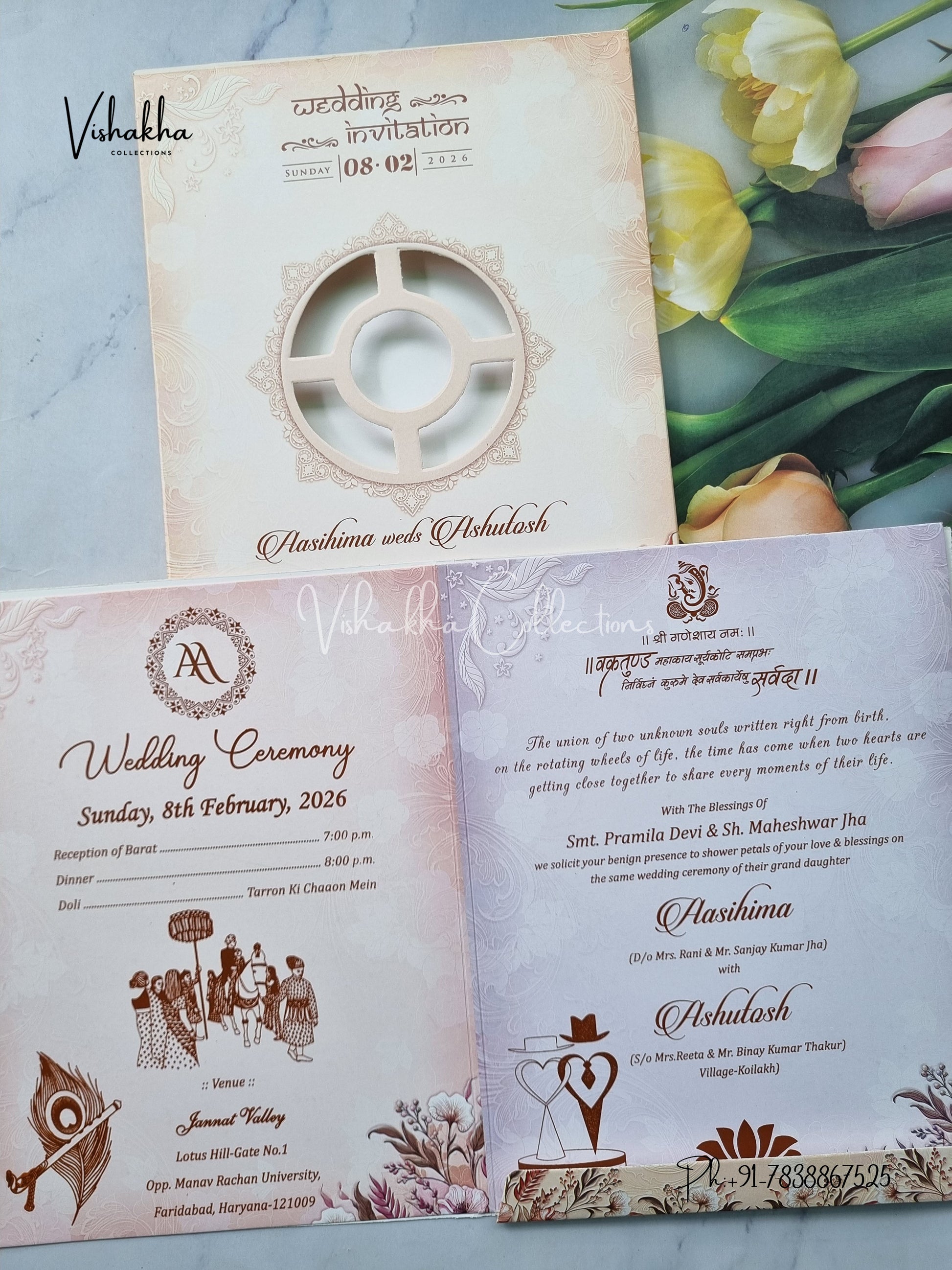 Semi Box Flower Hindu Muslim Christian Sikh Peach Colored invitation Cards NA-1125-39