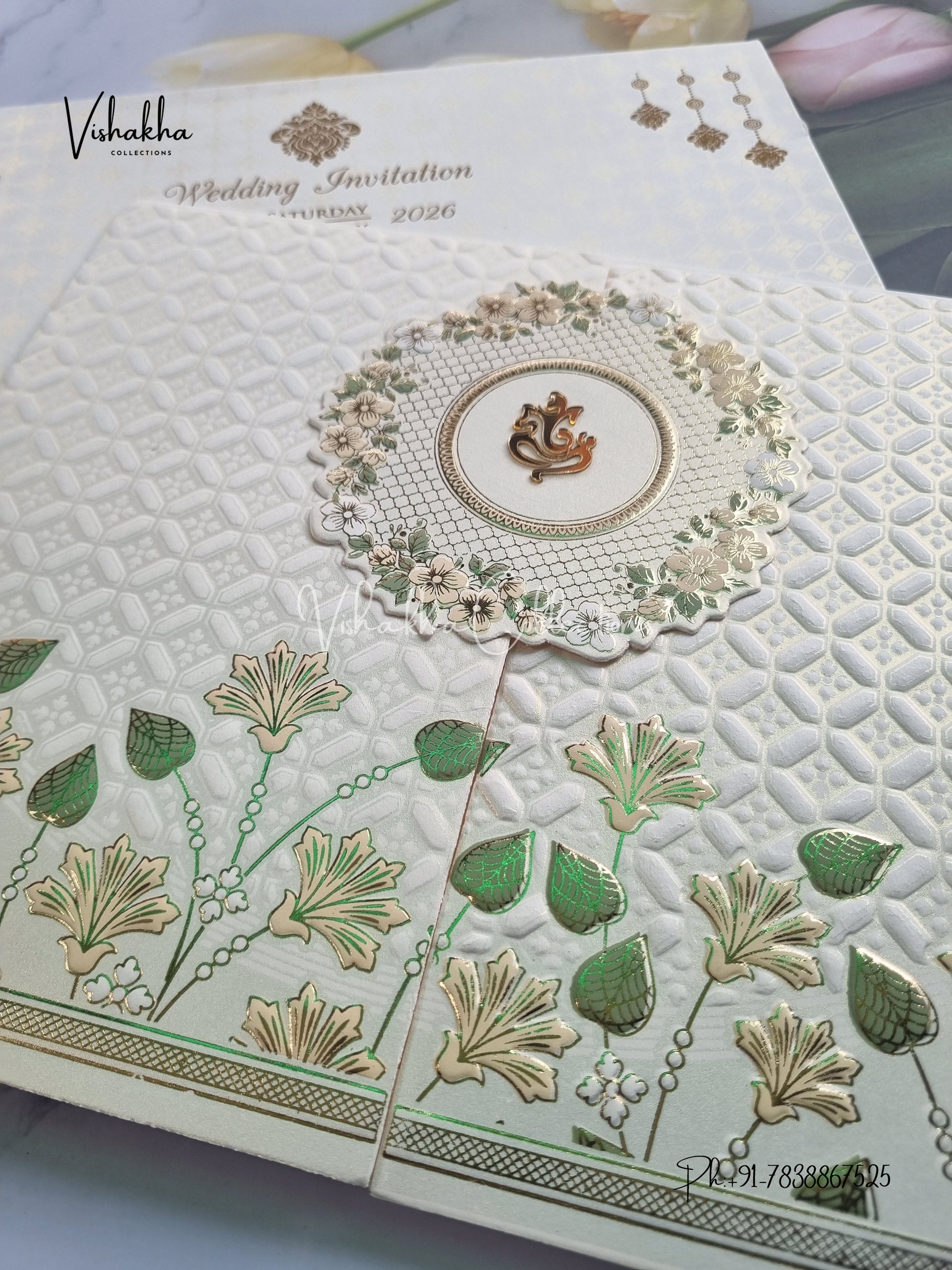 Vishakha Collections presents you beautiful luxury wedding invitation cards with all latest designs and the latest variety. Its just not a wedding invitation card but a beautiful feeling of love and relationship it carries for you. Beautifully printed and packed with a bundle of love. if you like it, dont think again, just go for it.If you are worrying about the quality of the product, send your doubts to us. We are here to help you. If you want in wholesale or bulk, dont forget to contact us.