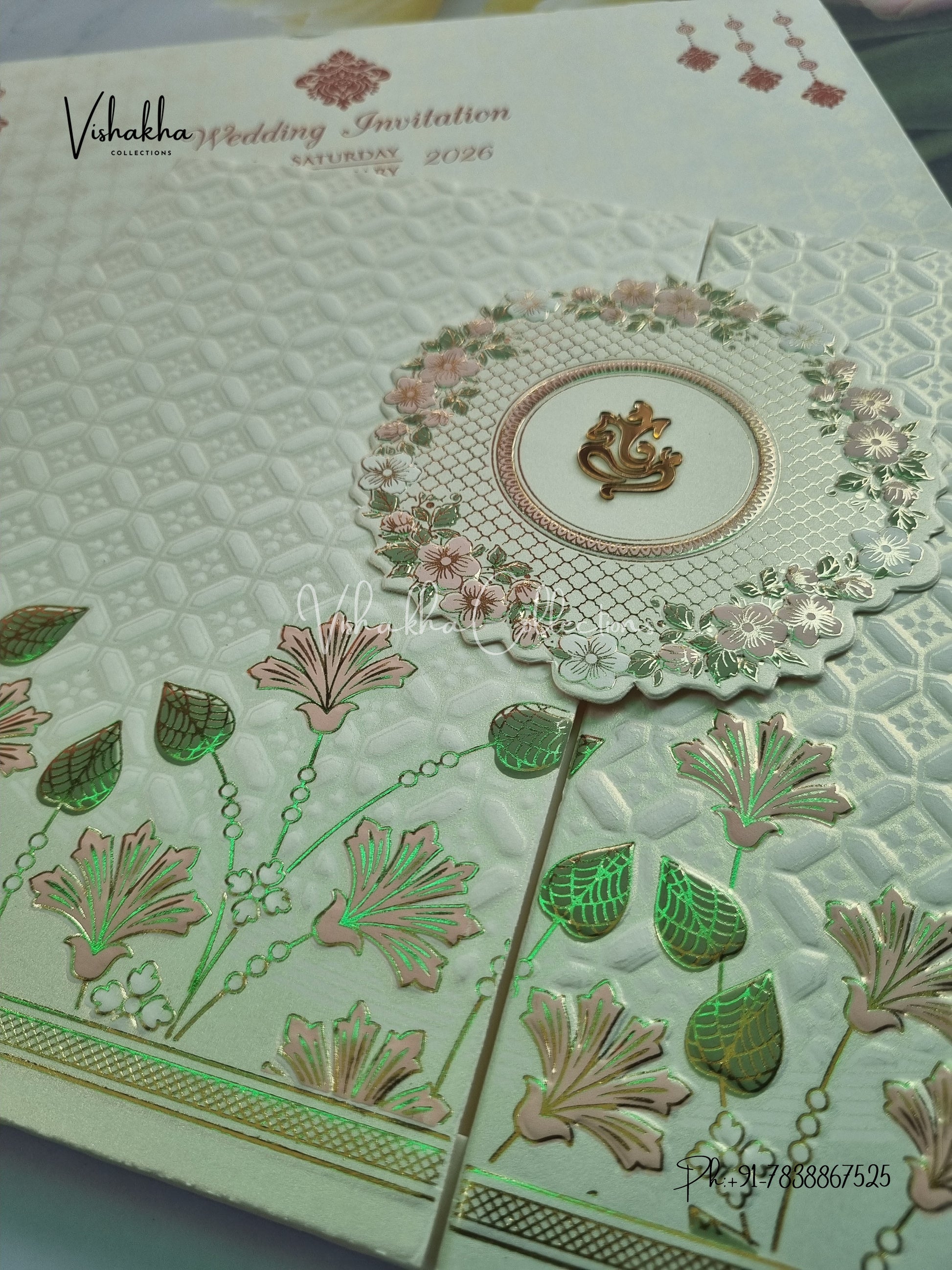 Vishakha Collections presents you beautiful luxury wedding invitation cards with all latest designs and the latest variety. Its just not a wedding invitation card but a beautiful feeling of love and relationship it carries for you. Beautifully printed and packed with a bundle of love. if you like it, dont think again, just go for it.If you are worrying about the quality of the product, send your doubts to us. We are here to help you. If you want in wholesale or bulk, dont forget to contact us.