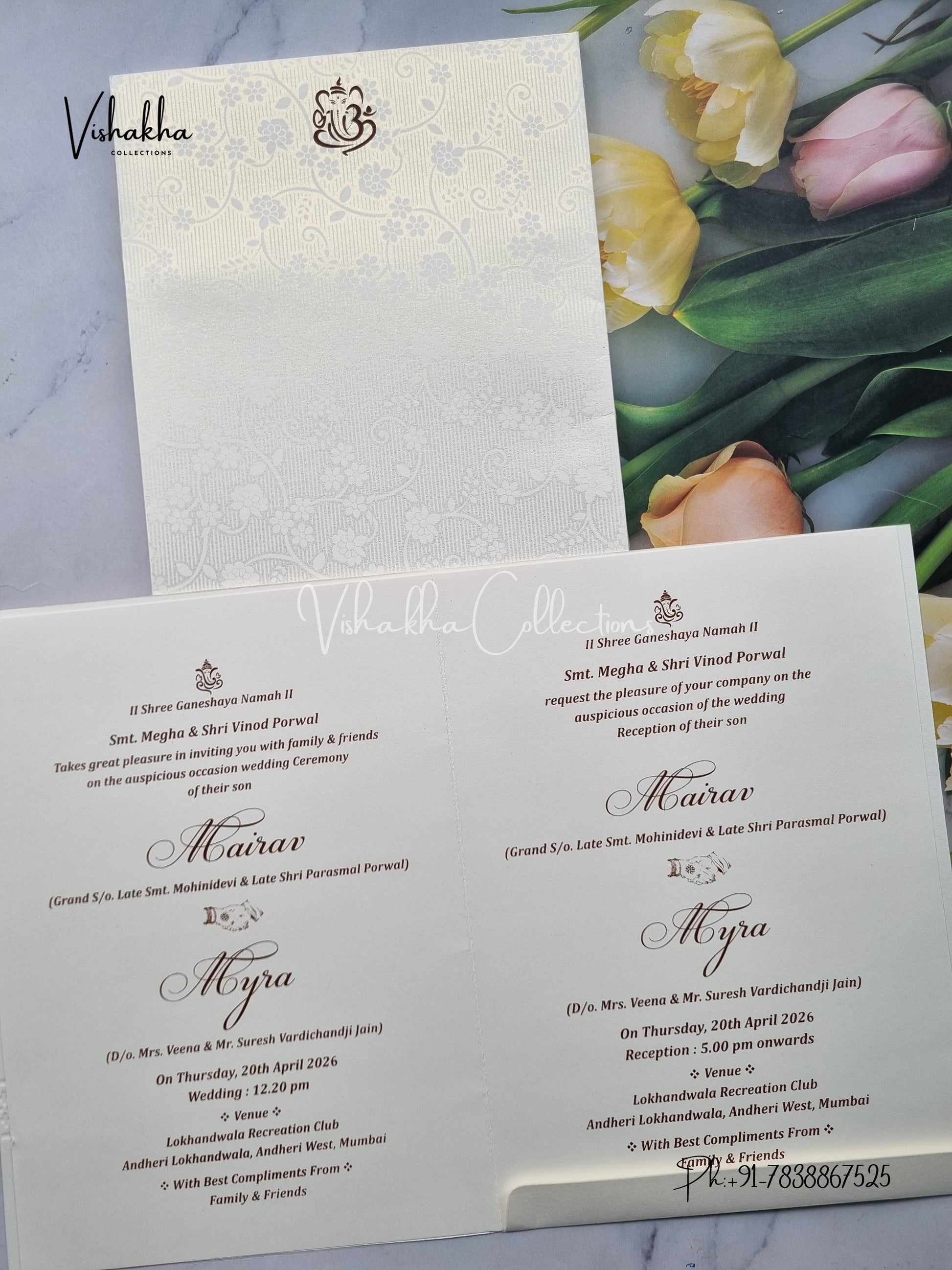 Semi Box Ganesh Ji Hindu white Colored invitation Cards SK-3497