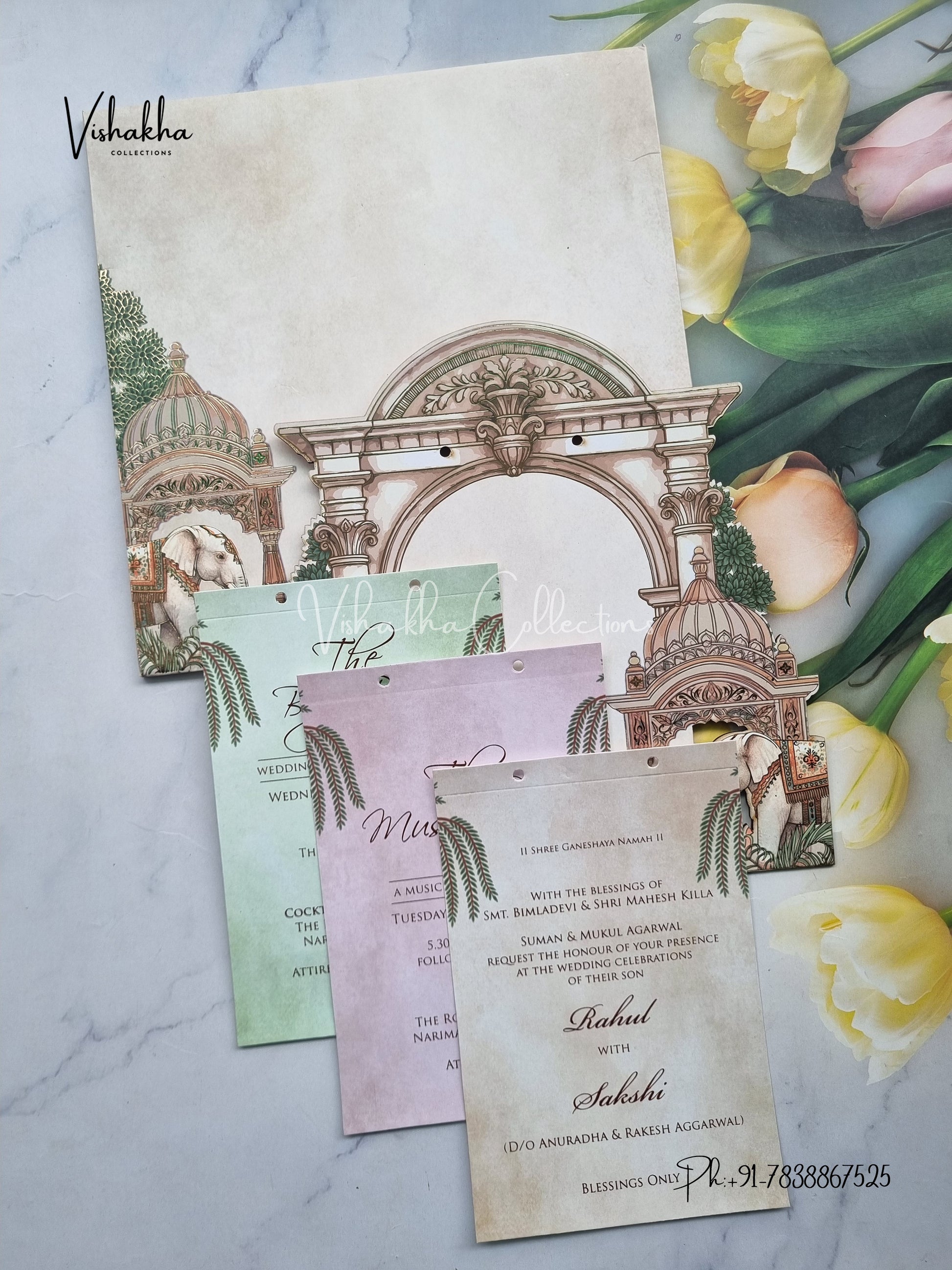 Vishakha Collections presents you beautiful luxury wedding invitation cards with all latest designs and the latest variety. Its just not a wedding invitation card but a beautiful feeling of love and relationship it carries for you. Beautifully printed and packed with a bundle of love. if you like it, dont think again, just go for it.If you are worrying about the quality of the product, send your doubts to us. We are here to help you. If you want in wholesale or bulk, dont forget to contact us.
