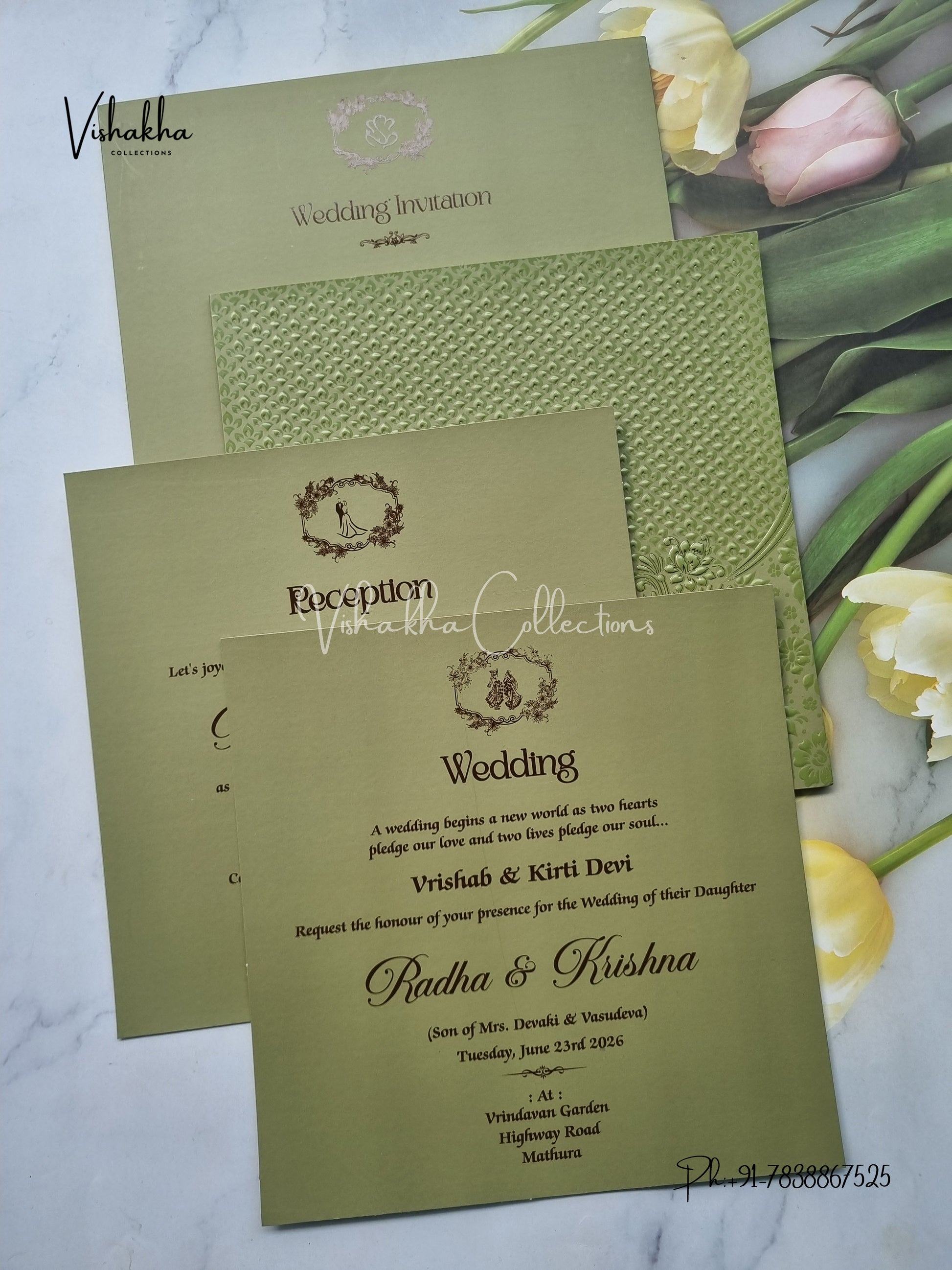 Vishakha Collections presents you beautiful luxury wedding invitation cards with all latest designs and the latest variety. Its just not a wedding invitation card but a beautiful feeling of love and relationship it carries for you. Beautifully printed and packed with a bundle of love. if you like it, dont think again, just go for it.If you are worrying about the quality of the product, send your doubts to us. We are here to help you. If you want in wholesale or bulk, dont forget to contact us.