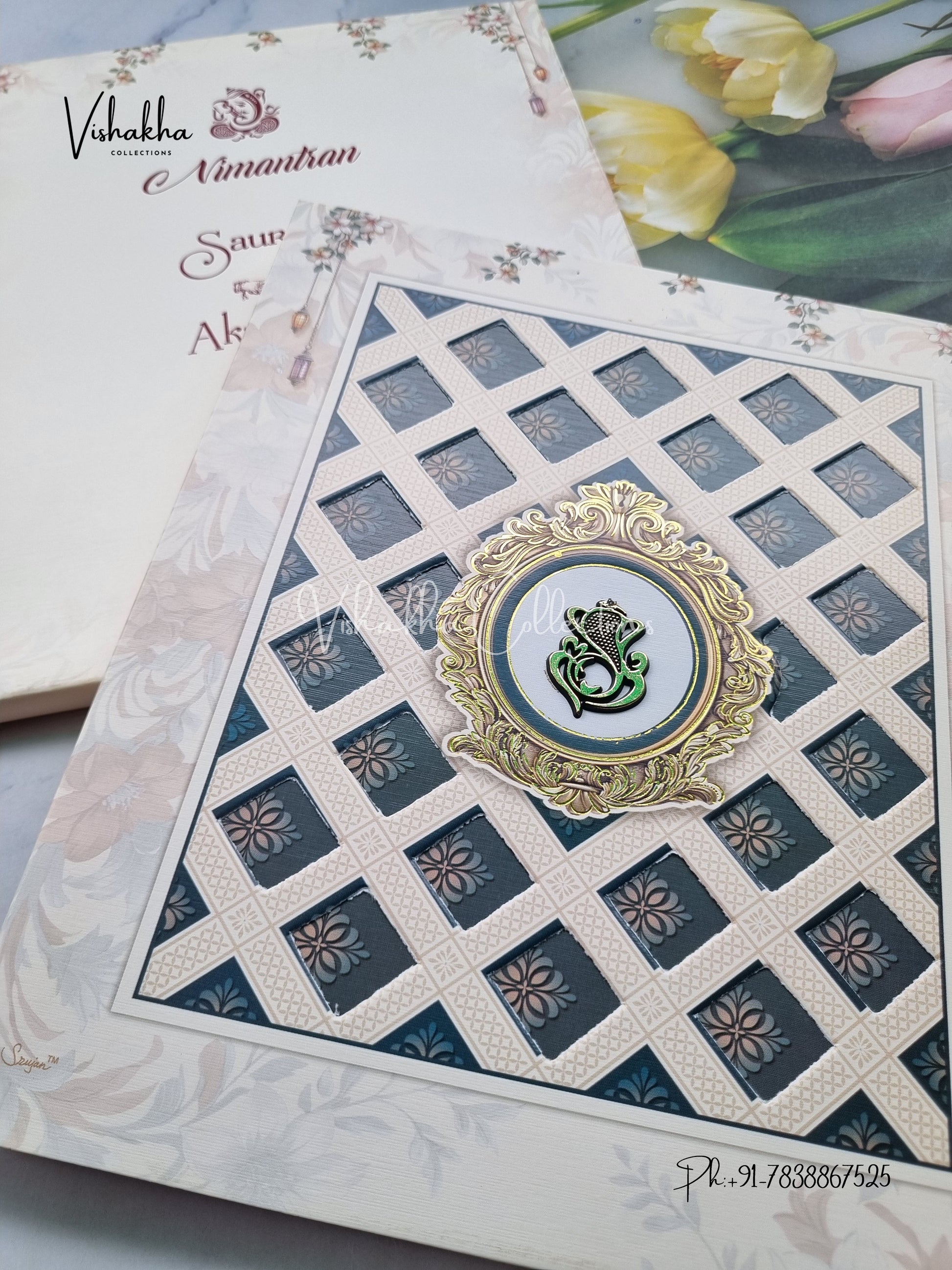 Semi Box Hindu Muslim Christian Sikh Dark Blue Colored invitation Cards NA-1125-17