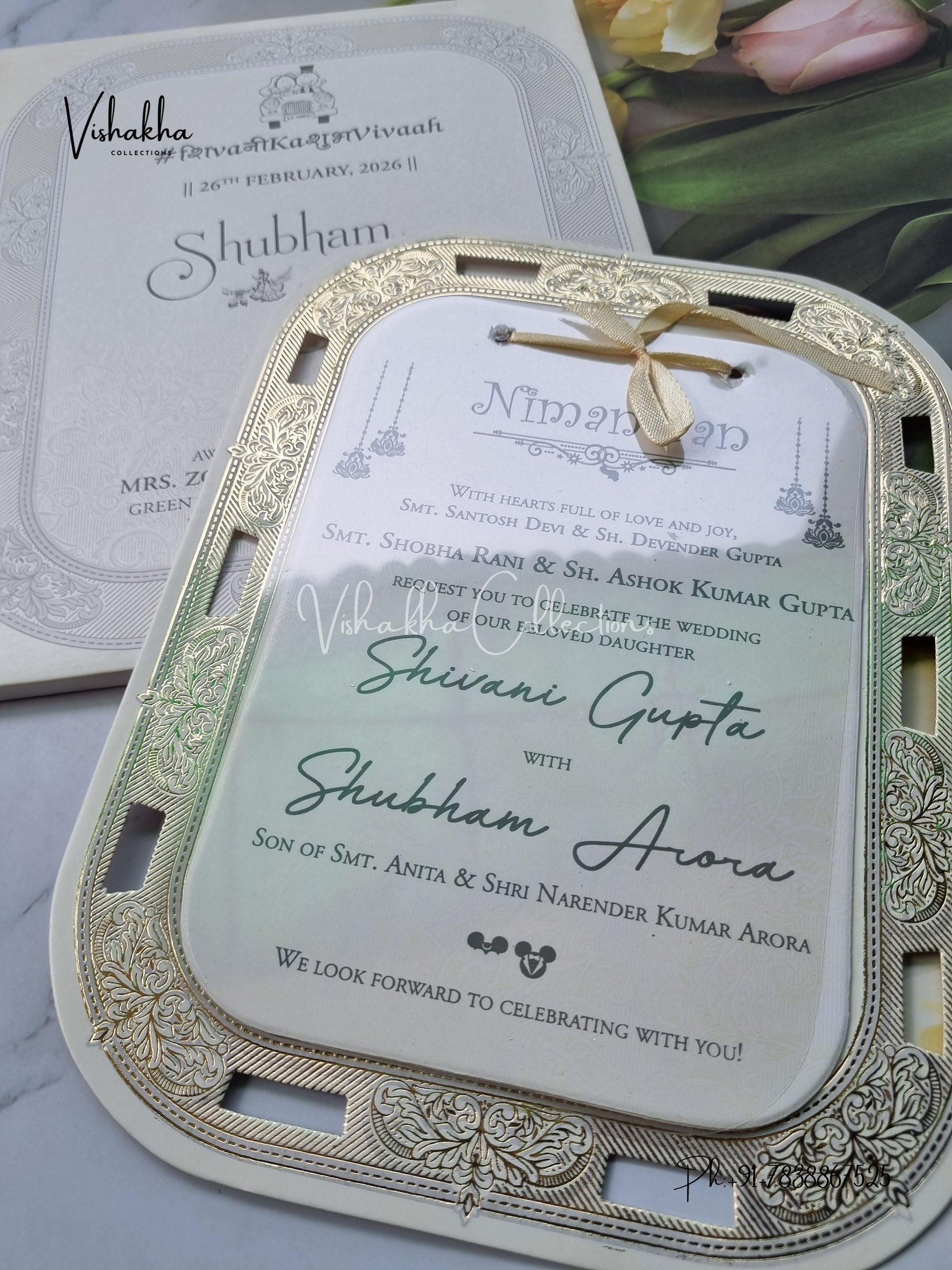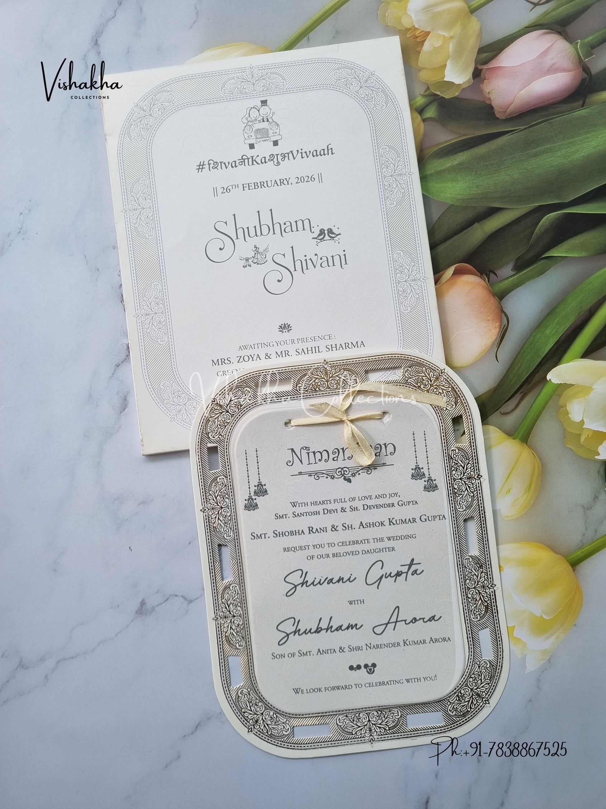 Vishakha Collections presents you beautiful luxury wedding invitation cards with all latest designs and the latest variety. Its just not a wedding invitation card but a beautiful feeling of love and relationship it carries for you. Beautifully printed and packed with a bundle of love. if you like it, dont think again, just go for it.If you are worrying about the quality of the product, send your doubts to us. We are here to help you. If you want in wholesale or bulk, dont forget to contact us.