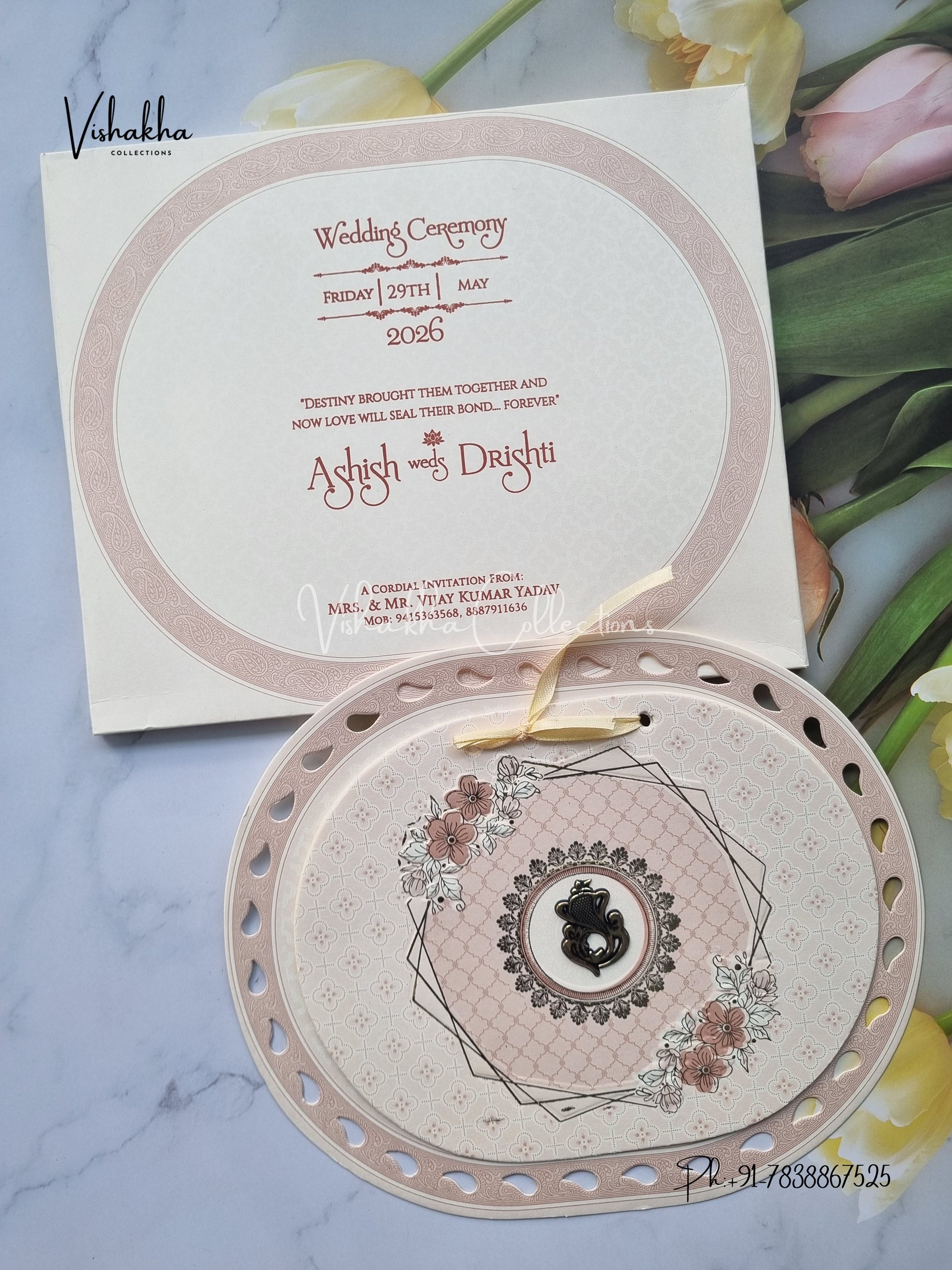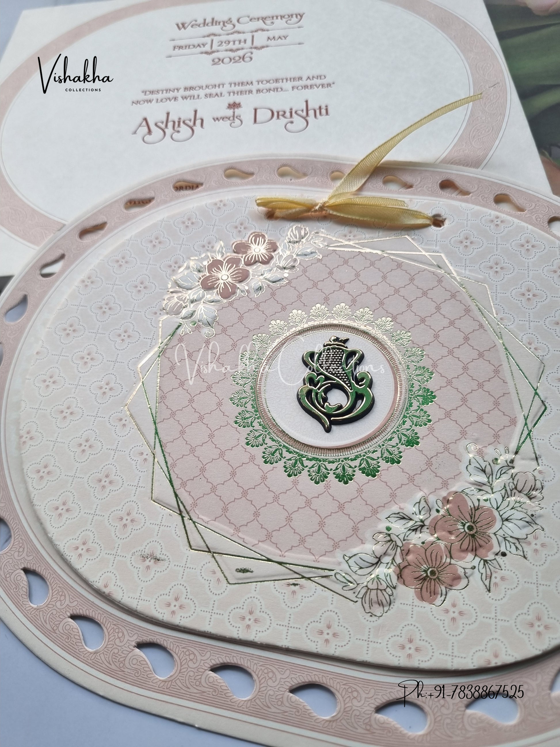 Vishakha Collections presents you beautiful luxury wedding invitation cards with all latest designs and the latest variety. Its just not a wedding invitation card but a beautiful feeling of love and relationship it carries for you. Beautifully printed and packed with a bundle of love. if you like it, dont think again, just go for it.If you are worrying about the quality of the product, send your doubts to us. We are here to help you. If you want in wholesale or bulk, dont forget to contact us.
