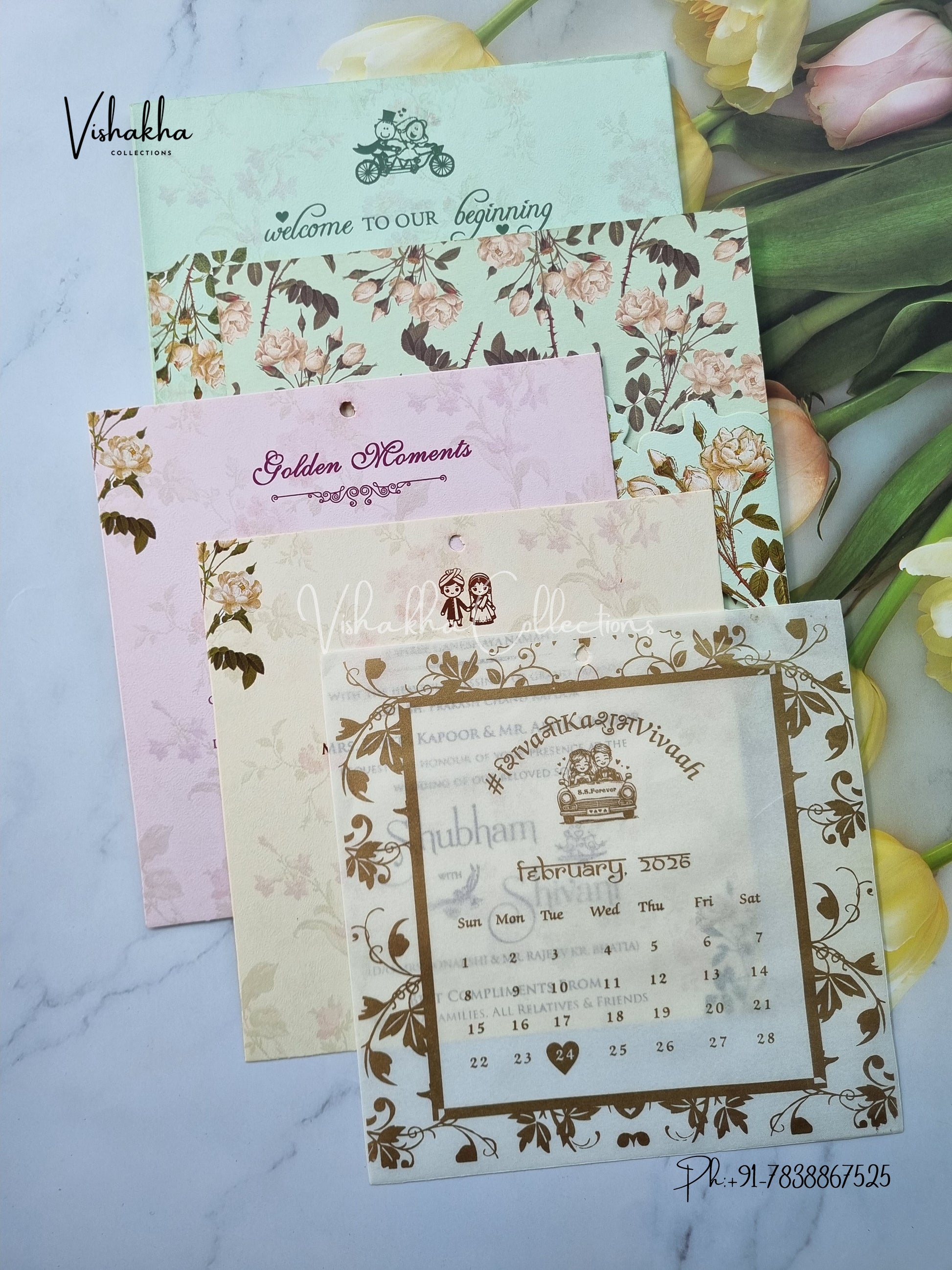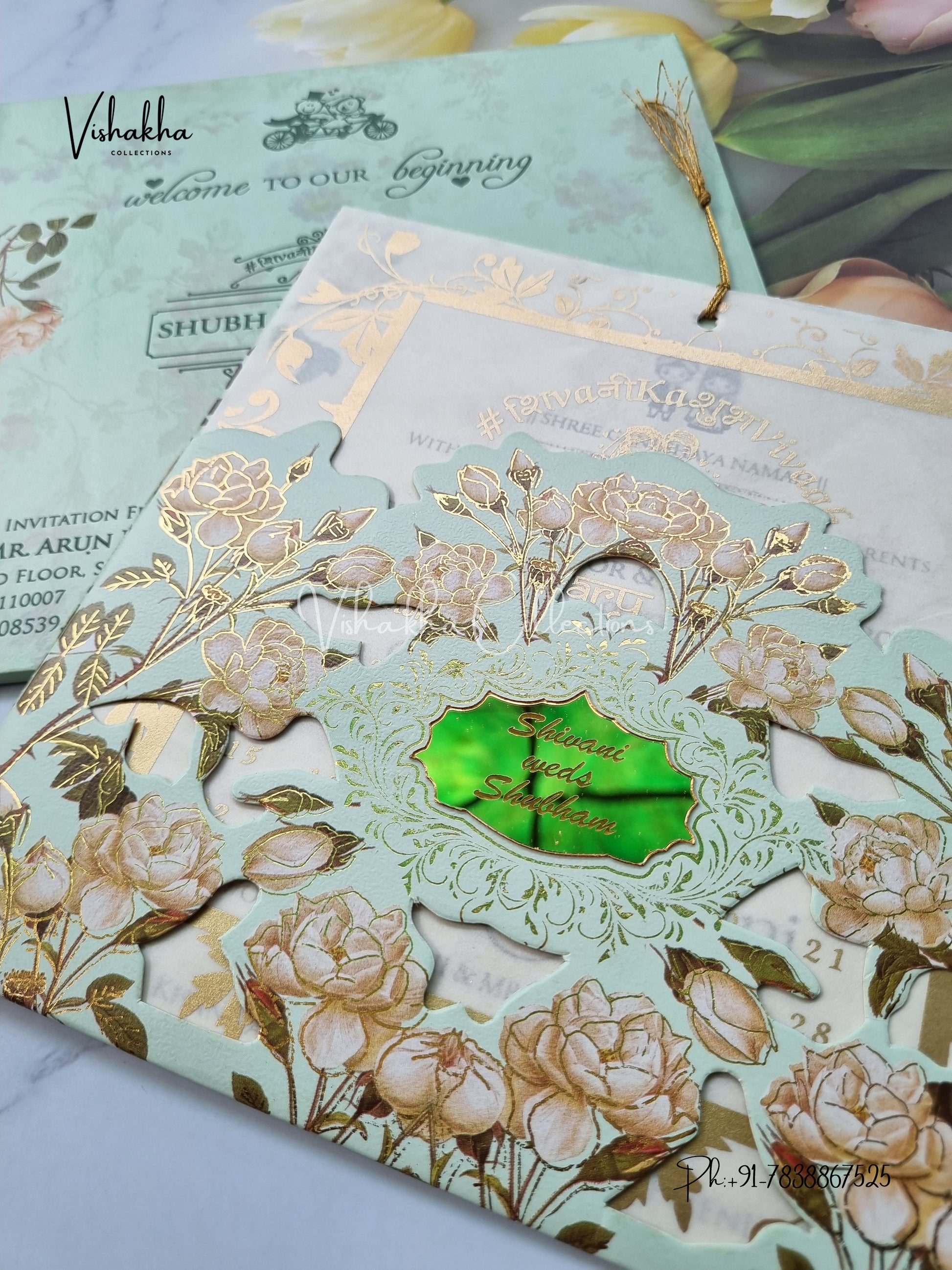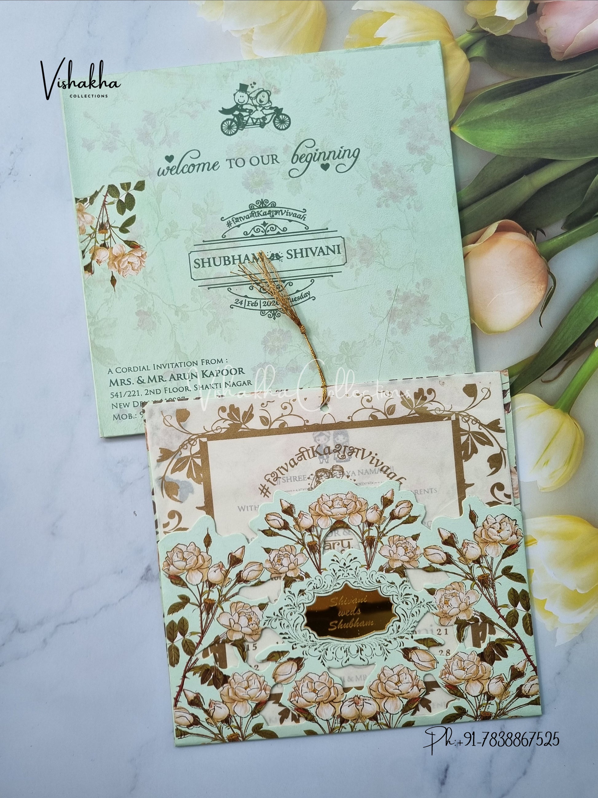 Vishakha Collections presents you beautiful luxury wedding invitation cards with all latest designs and the latest variety. Its just not a wedding invitation card but a beautiful feeling of love and relationship it carries for you. Beautifully printed and packed with a bundle of love. if you like it, dont think again, just go for it.If you are worrying about the quality of the product, send your doubts to us. We are here to help you. If you want in wholesale or bulk, dont forget to contact us.