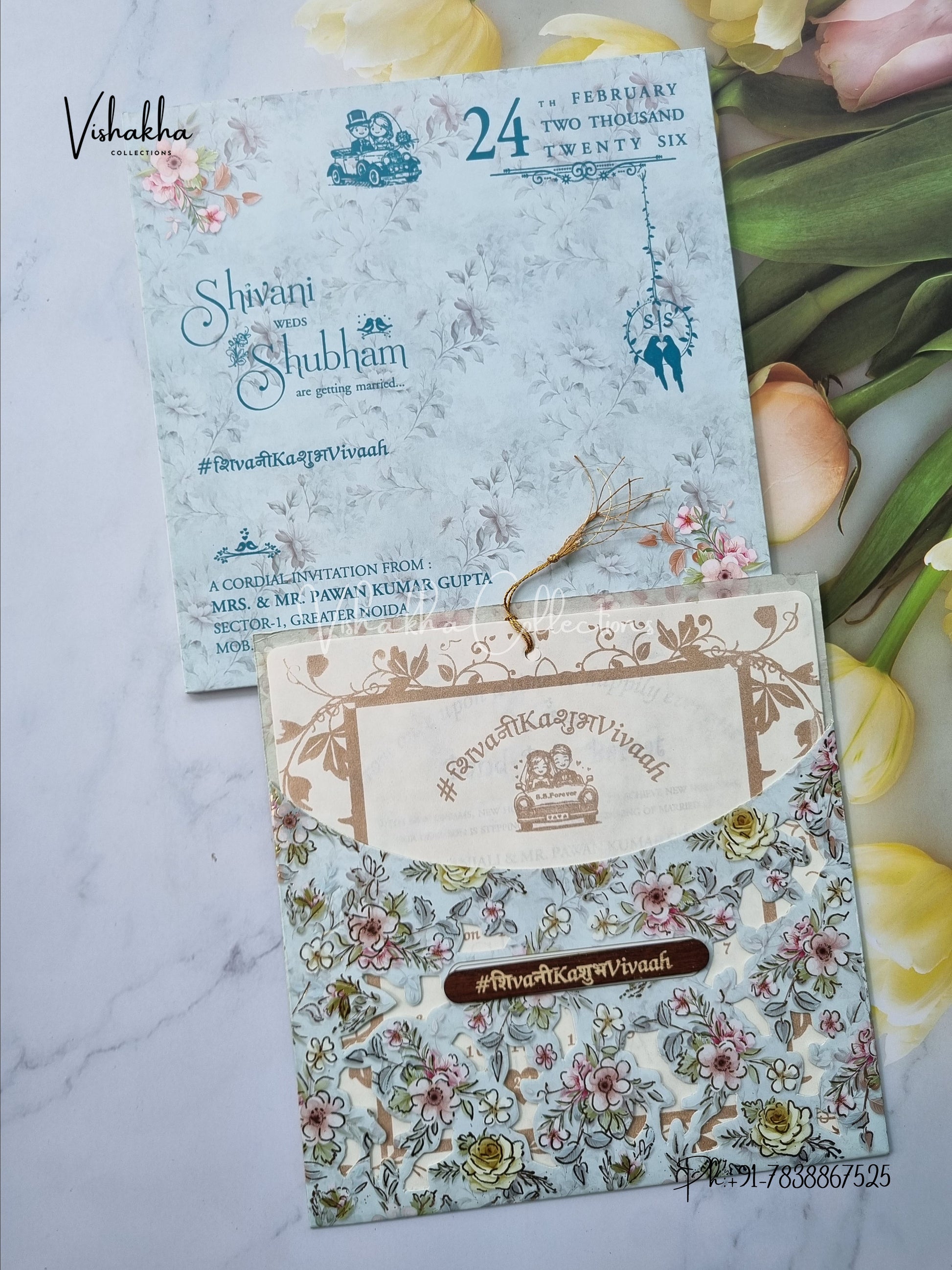 Vishakha Collections presents you beautiful luxury wedding invitation cards with all latest designs and the latest variety. Its just not a wedding invitation card but a beautiful feeling of love and relationship it carries for you. Beautifully printed and packed with a bundle of love. if you like it, dont think again, just go for it.If you are worrying about the quality of the product, send your doubts to us. We are here to help you. If you want in wholesale or bulk, dont forget to contact us.