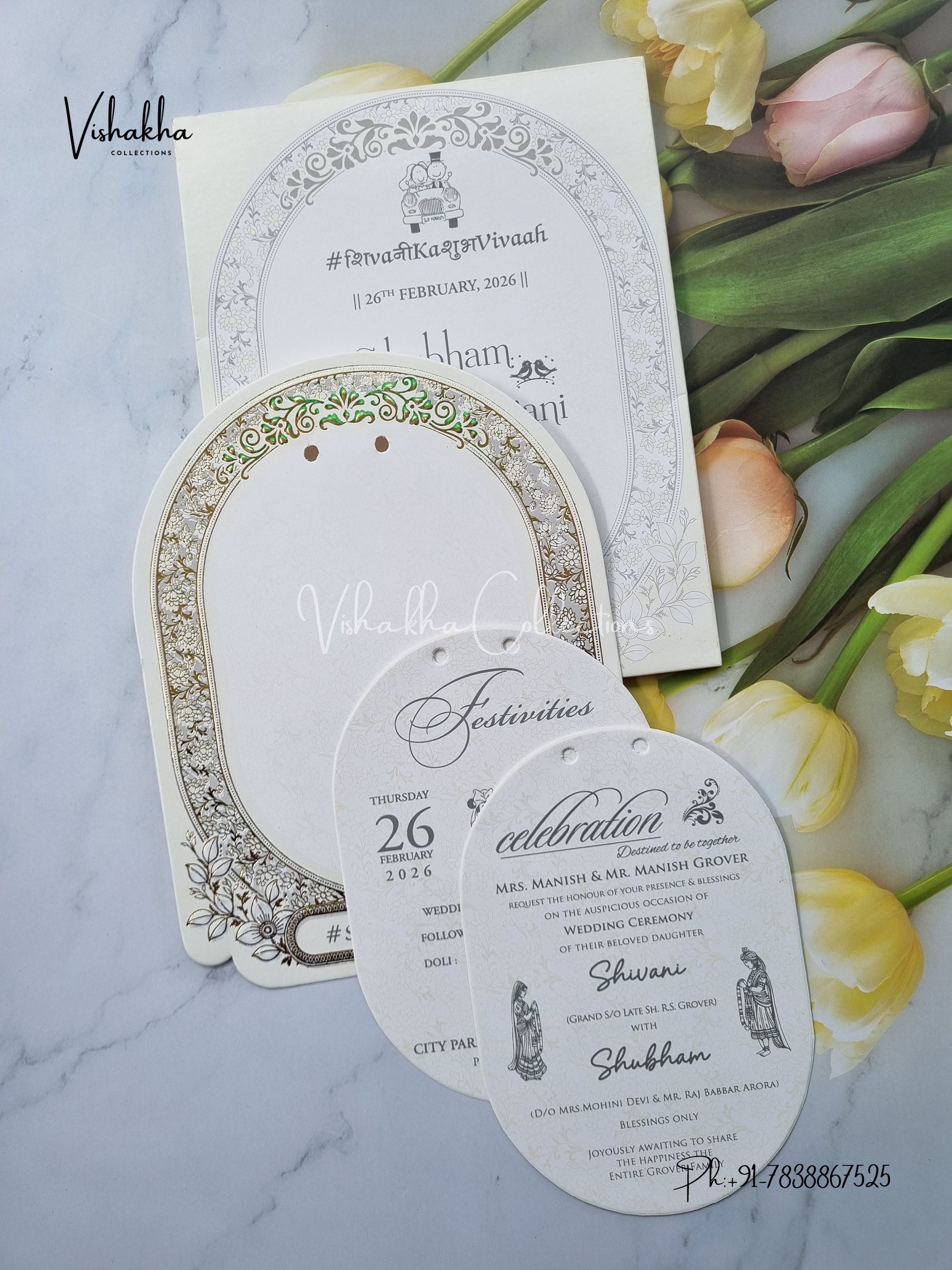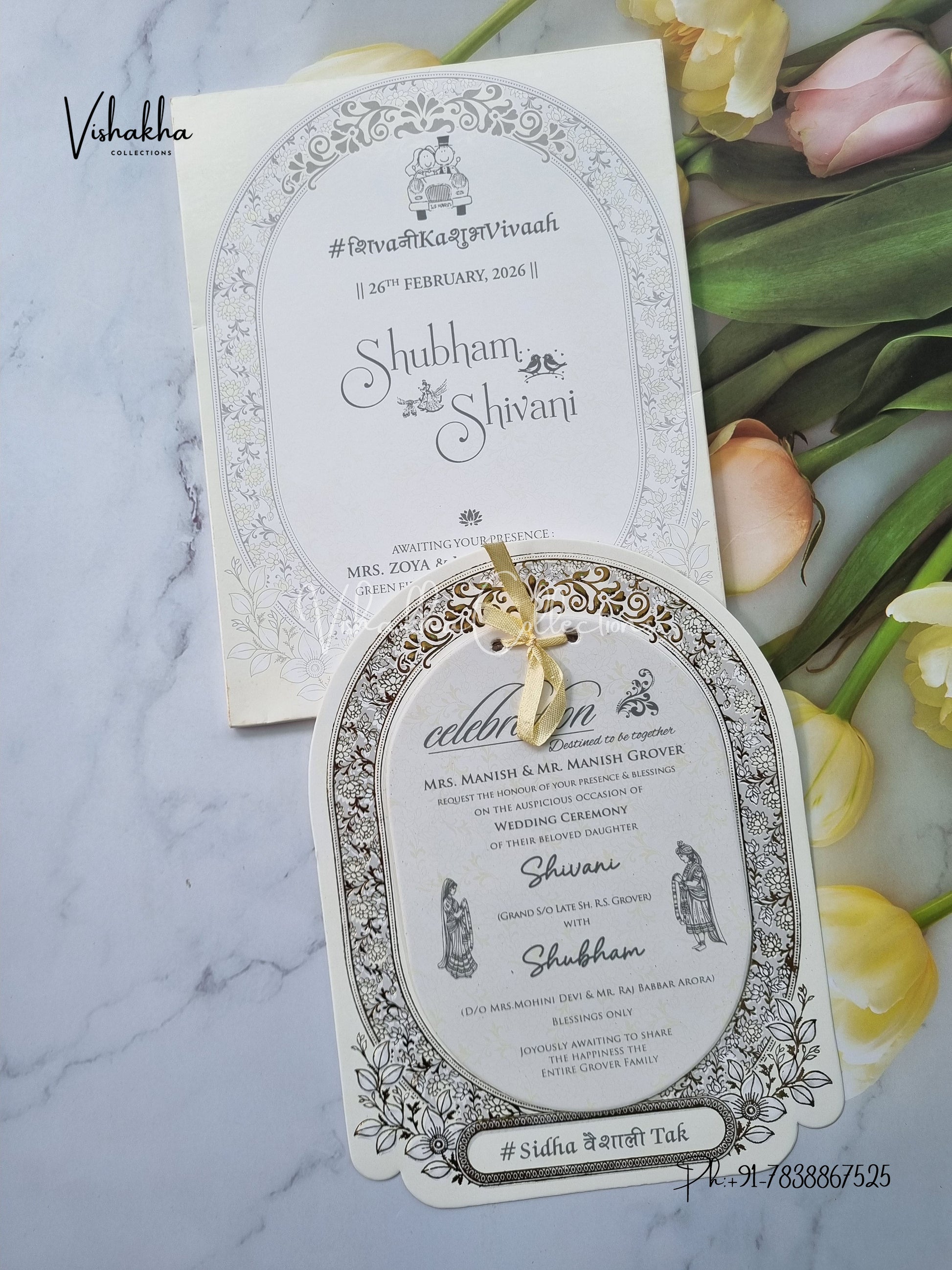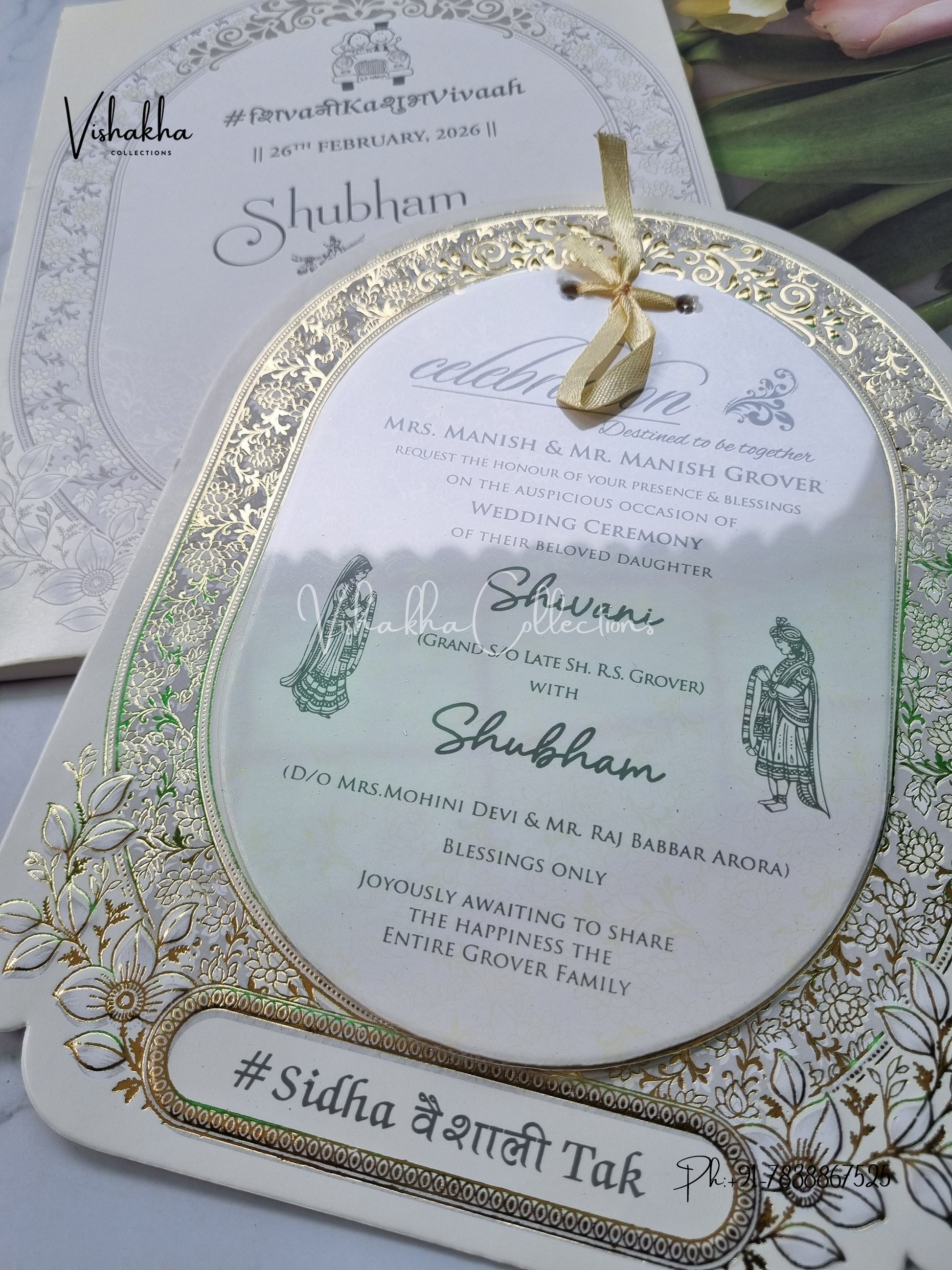 Vishakha Collections presents you beautiful luxury wedding invitation cards with all latest designs and the latest variety. Its just not a wedding invitation card but a beautiful feeling of love and relationship it carries for you. Beautifully printed and packed with a bundle of love. if you like it, dont think again, just go for it.If you are worrying about the quality of the product, send your doubts to us. We are here to help you. If you want in wholesale or bulk, dont forget to contact us.