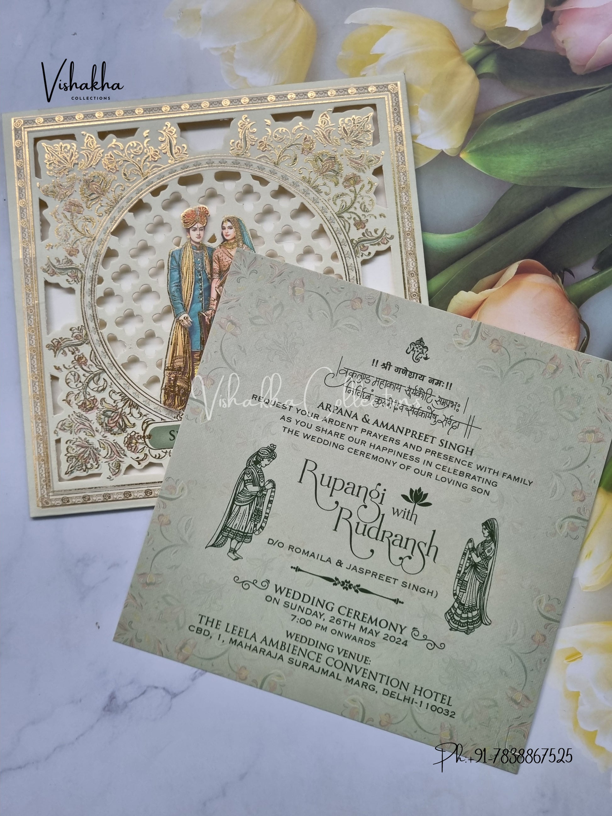 Single Insert Dulah Dulhan Hindu Sikh Laser Cut invitation Cards EJ-5074