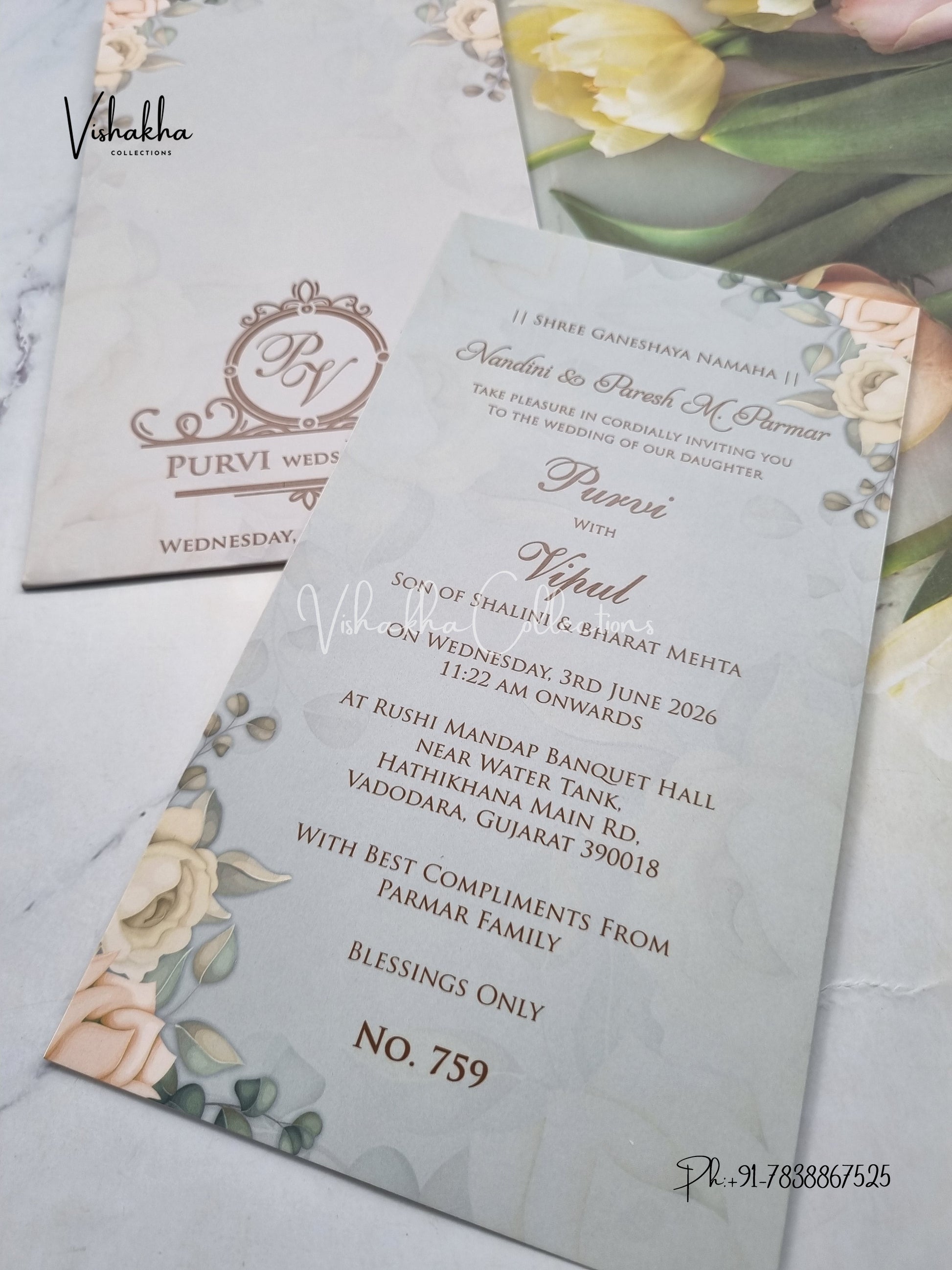 Single Insert Flower Hindu Muslim Christian Sikh Colored invitation Cards LN-759