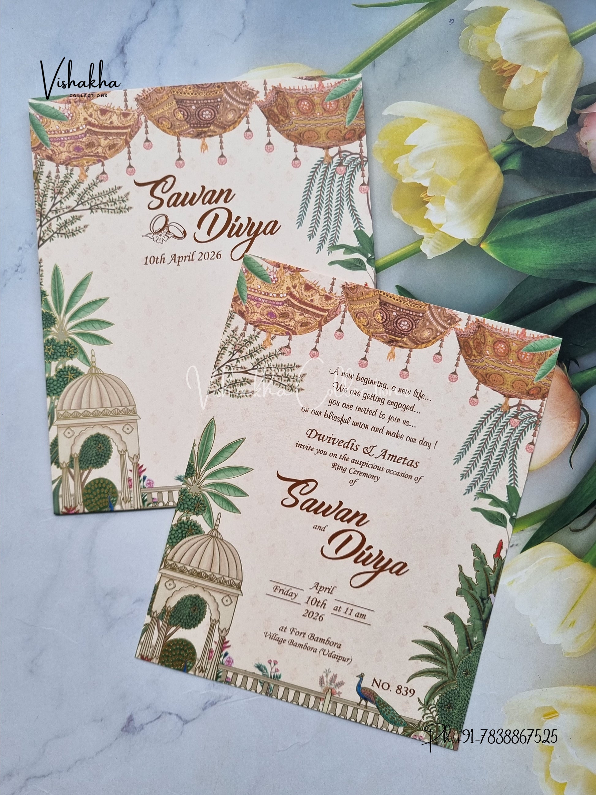 Vishakha Collections presents you beautiful luxury wedding invitation cards with all latest designs and the latest variety. Its just not a wedding invitation card but a beautiful feeling of love and relationship it carries for you. Beautifully printed and packed with a bundle of love. if you like it, dont think again, just go for it.If you are worrying about the quality of the product, send your doubts to us. We are here to help you. If you want in wholesale or bulk, dont forget to contact us.