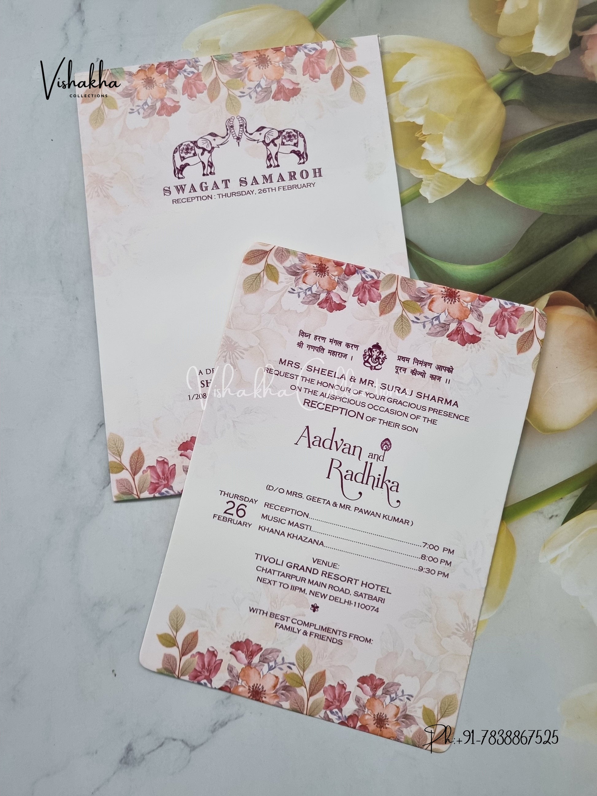 Single Insert Flower Hindu Muslim Christian Sikh invitation Cards EJ-5224