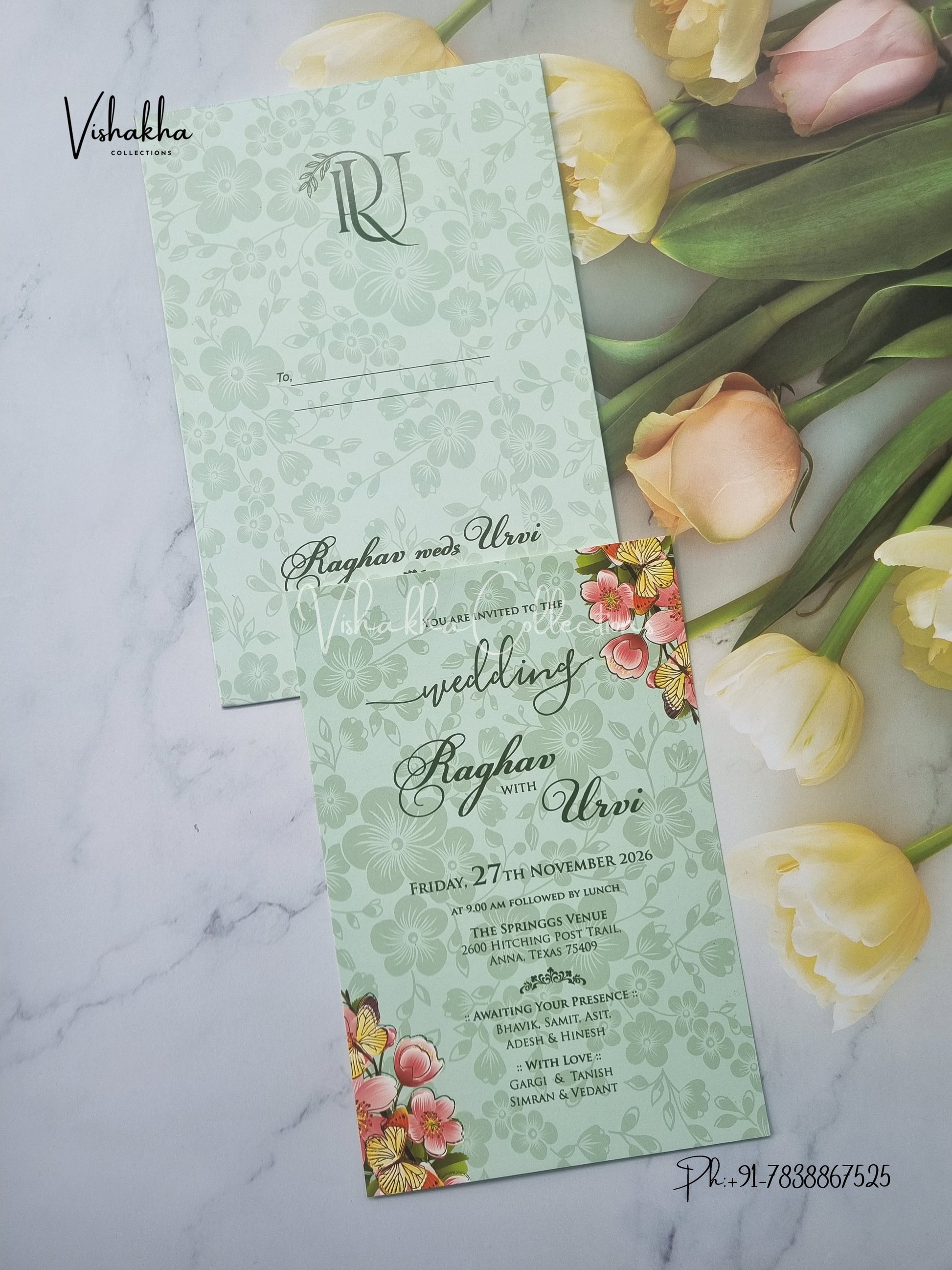 Single Insert Flower Hindu Muslim Christian Sikh invitation Cards VN-S-28