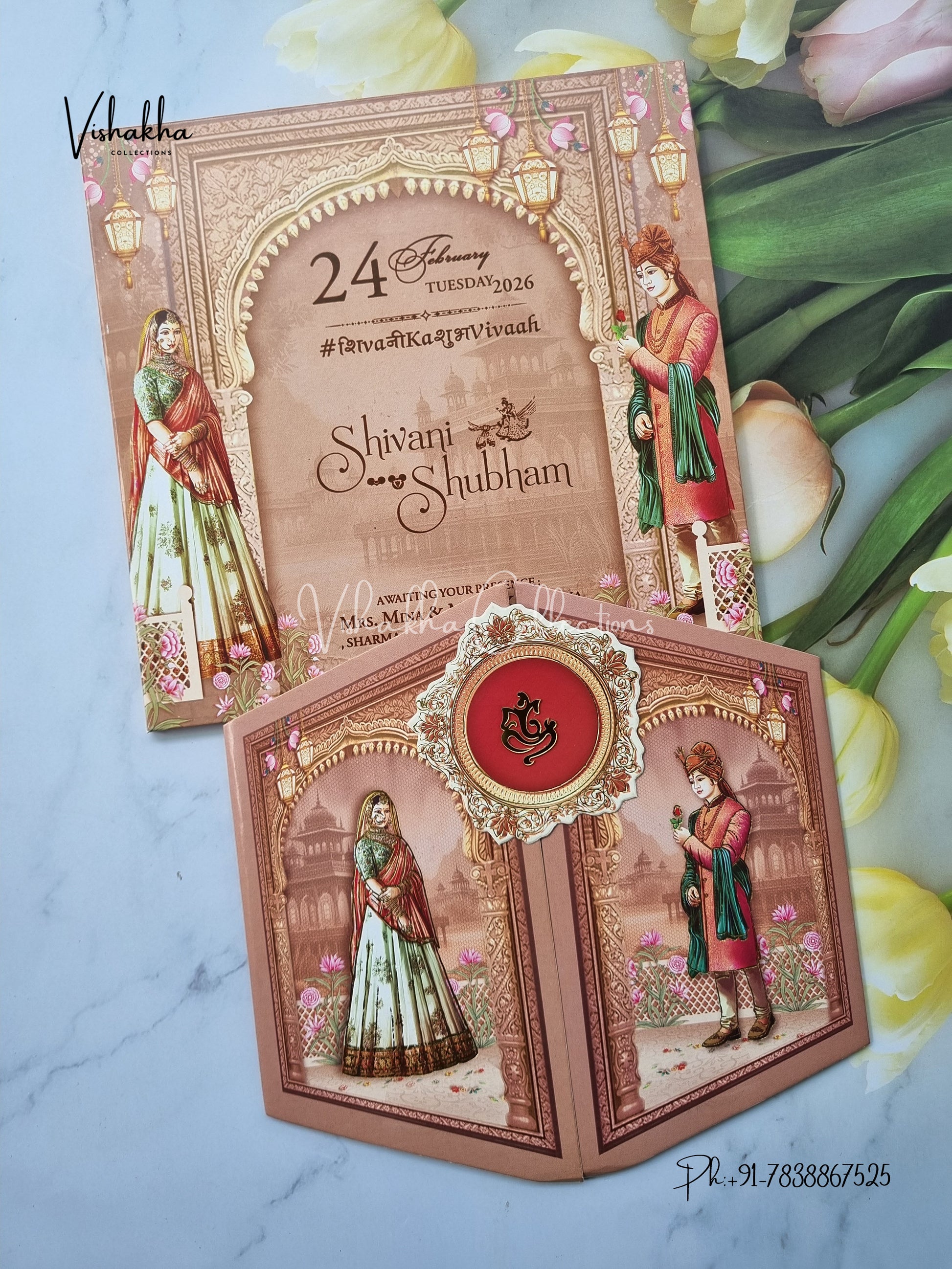 Unique Concept Semi Box Dulah Dulhan Double Door Hindu Sikh invitation Cards ATS-5267