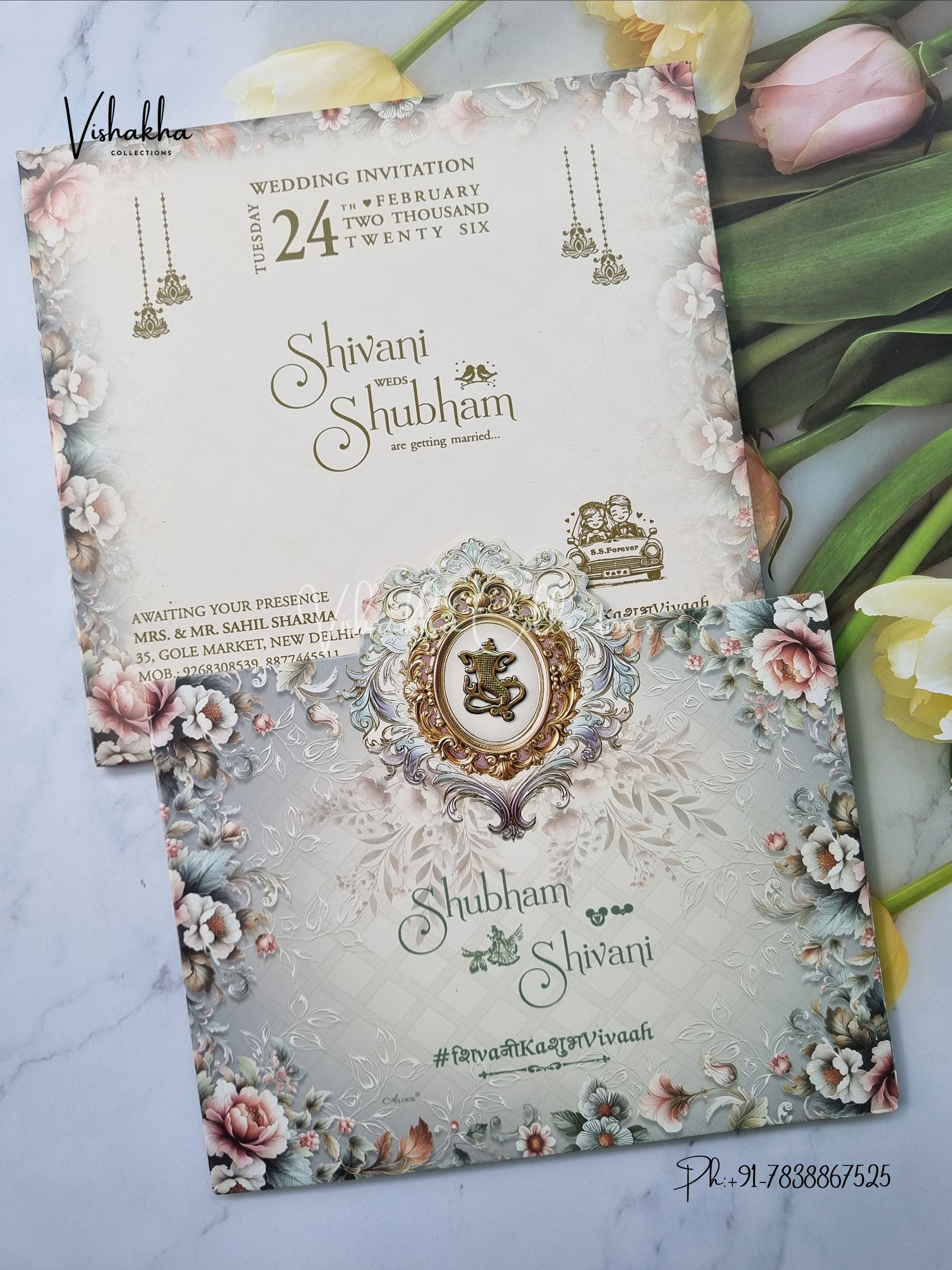 Unique Concept Semi Box Flower Hindu Muslim Christian Sikh invitation Cards ATS-5213
