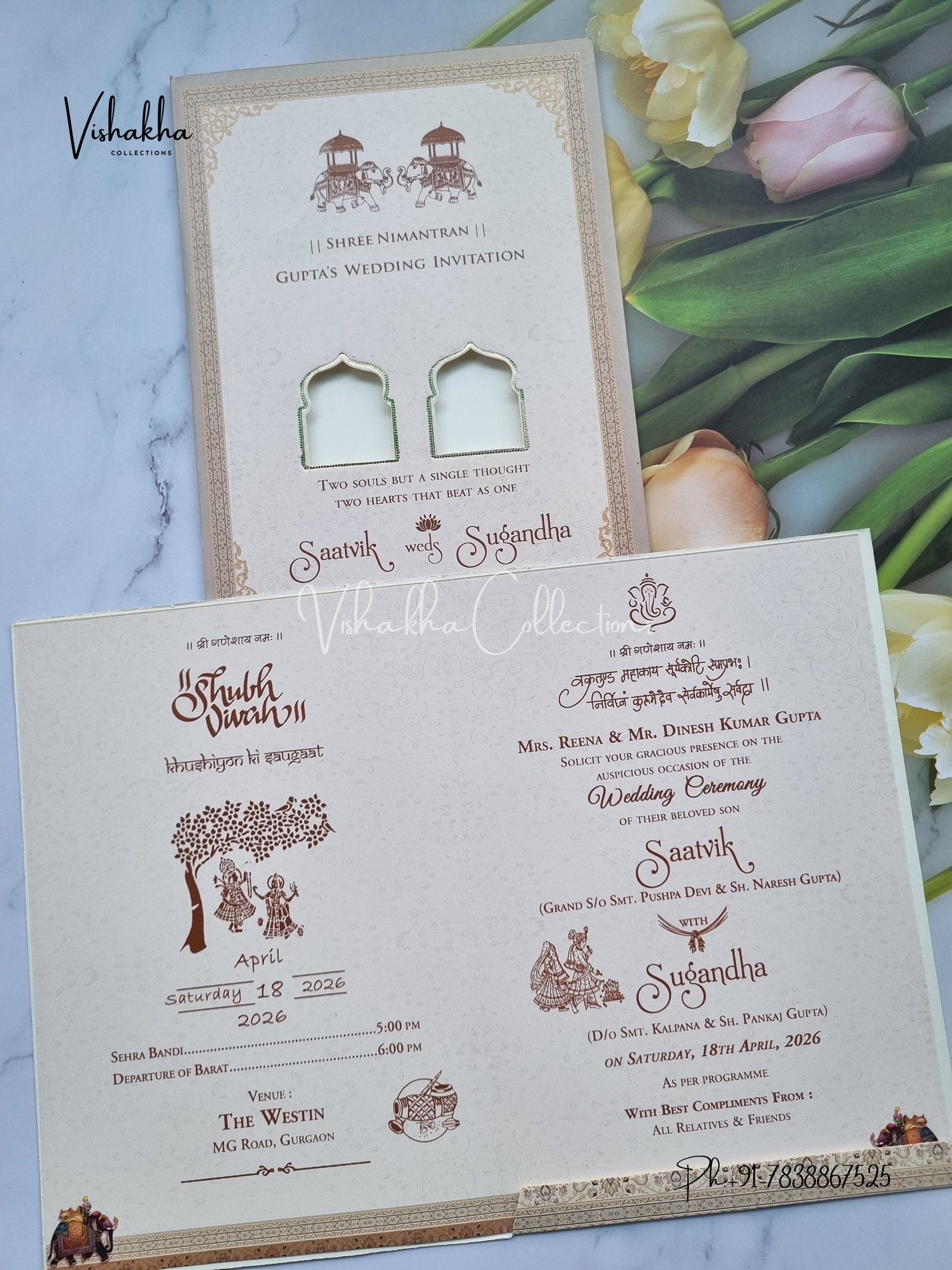 Vishakha Collections presents you beautiful luxury wedding invitation cards with all latest designs and the latest variety. Its just not a wedding invitation card but a beautiful feeling of love and relationship it carries for you. Beautifully printed and packed with a bundle of love. if you like it, dont think again, just go for it.If you are worrying about the quality of the product, send your doubts to us. We are here to help you. If you want in wholesale or bulk, dont forget to contact us.